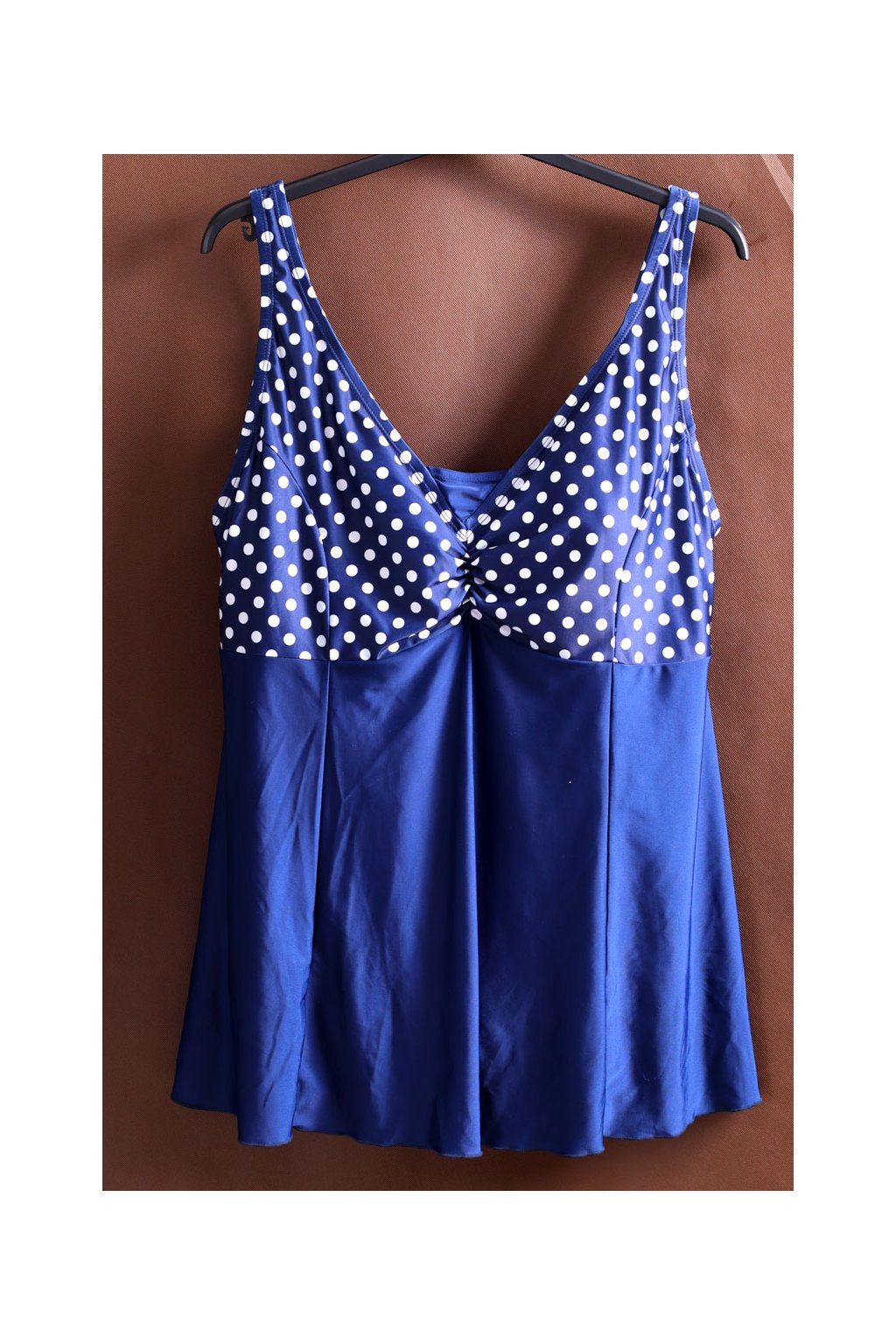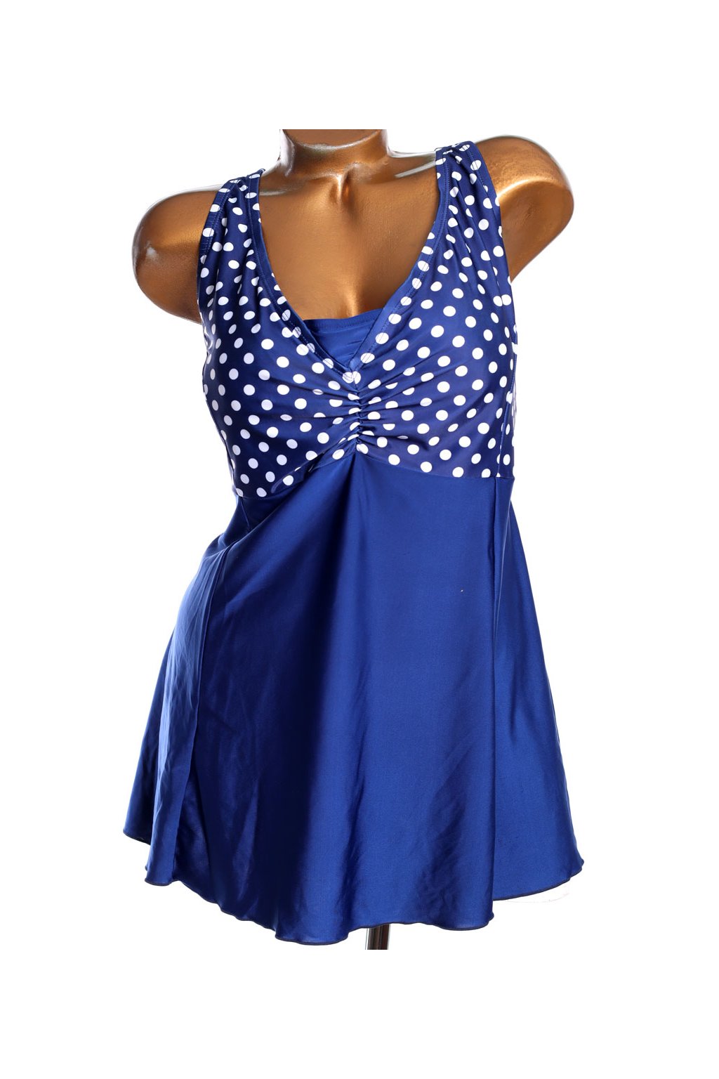 Dámské tmavě modro-bílé puntíkované jednodílné šaty / YOURS / XXXXL (52) / UK 24 / ANGLIE