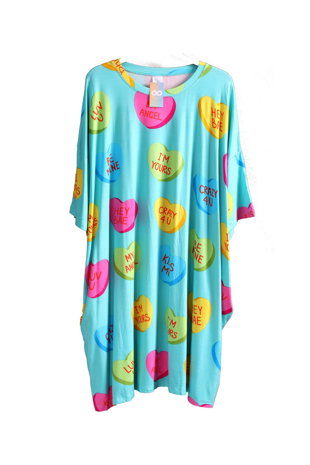 Dámské tyrkysové domácí šaty s barevnými srdíčky /OO / XXXXL+ (54/56/58) / UK 28/30 / ANGLIE