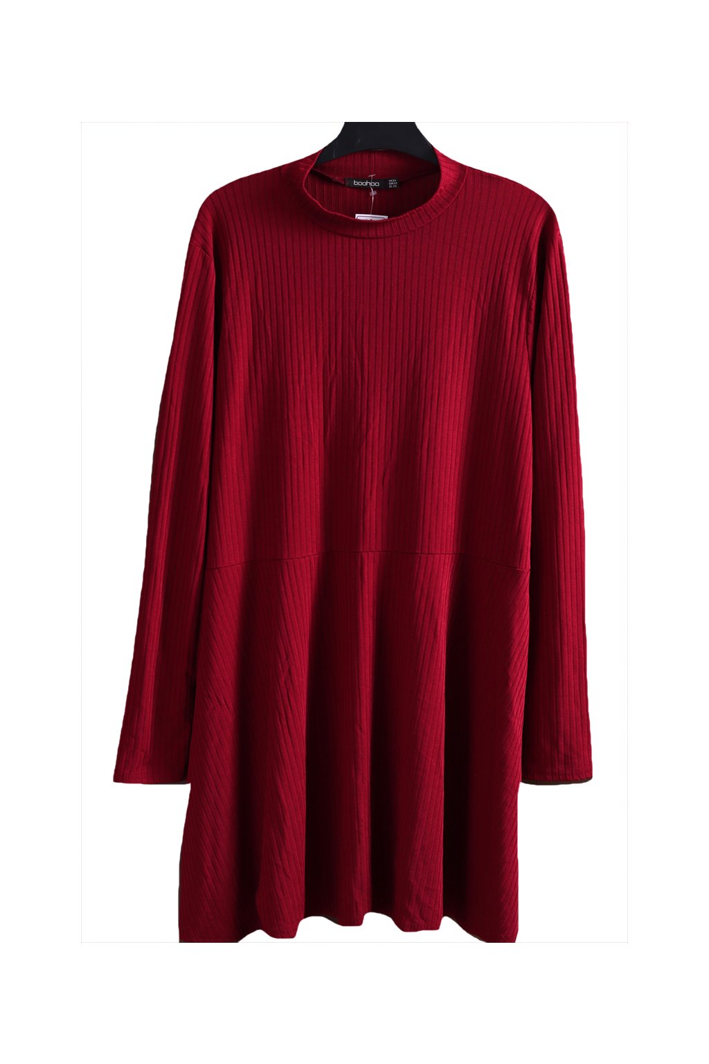 Dámské žebrované vínové šaty / BOOHOO / XXXXL (52) / UK 24 / ANGLIE
