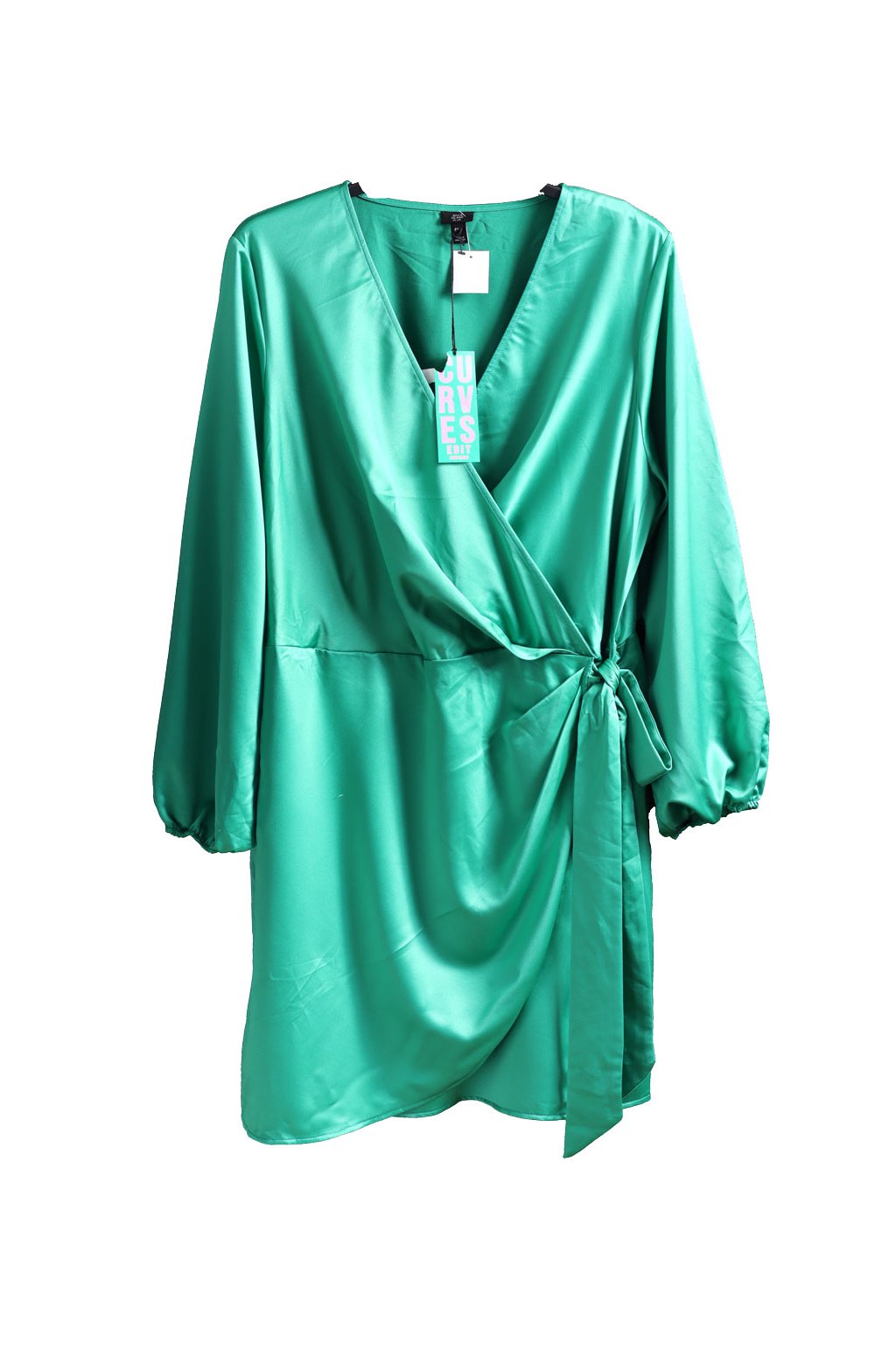 Dámské zelené elegantní značkové šaty s vázáním v pase / RIVER ISLAND PLUS / XXXXL (52) / UK 24 / ANGLIE