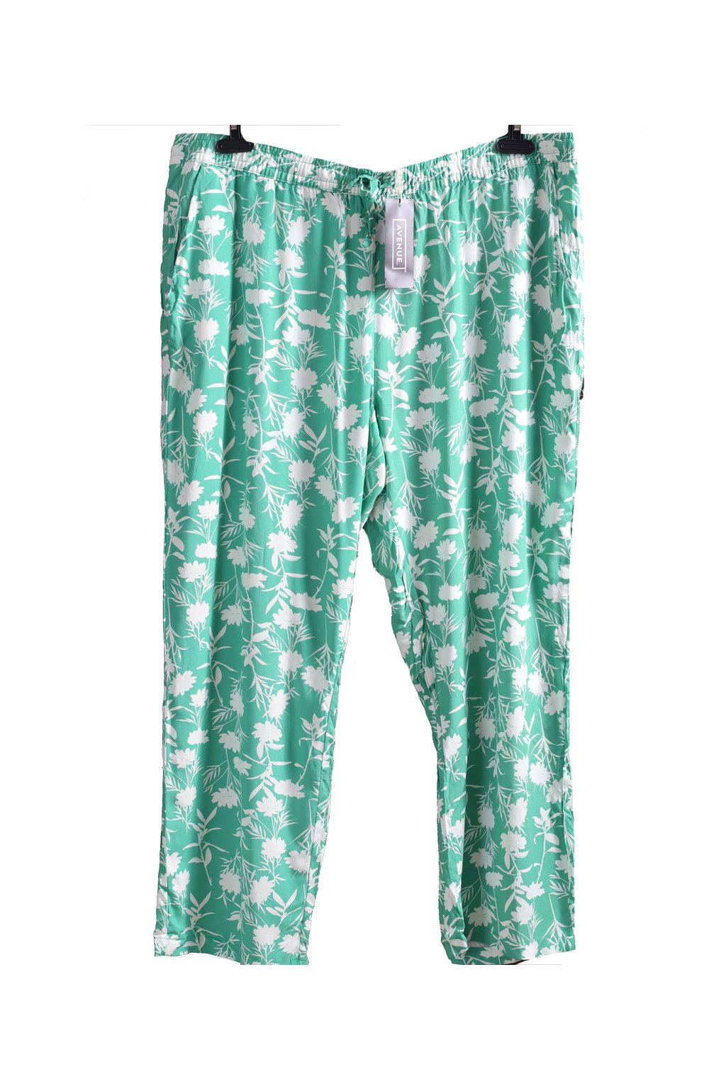 Dámské zelené kalhoty s bílými květy / AVENUE / XXXXL (52/54) / UK 24/26 / ANGLIE