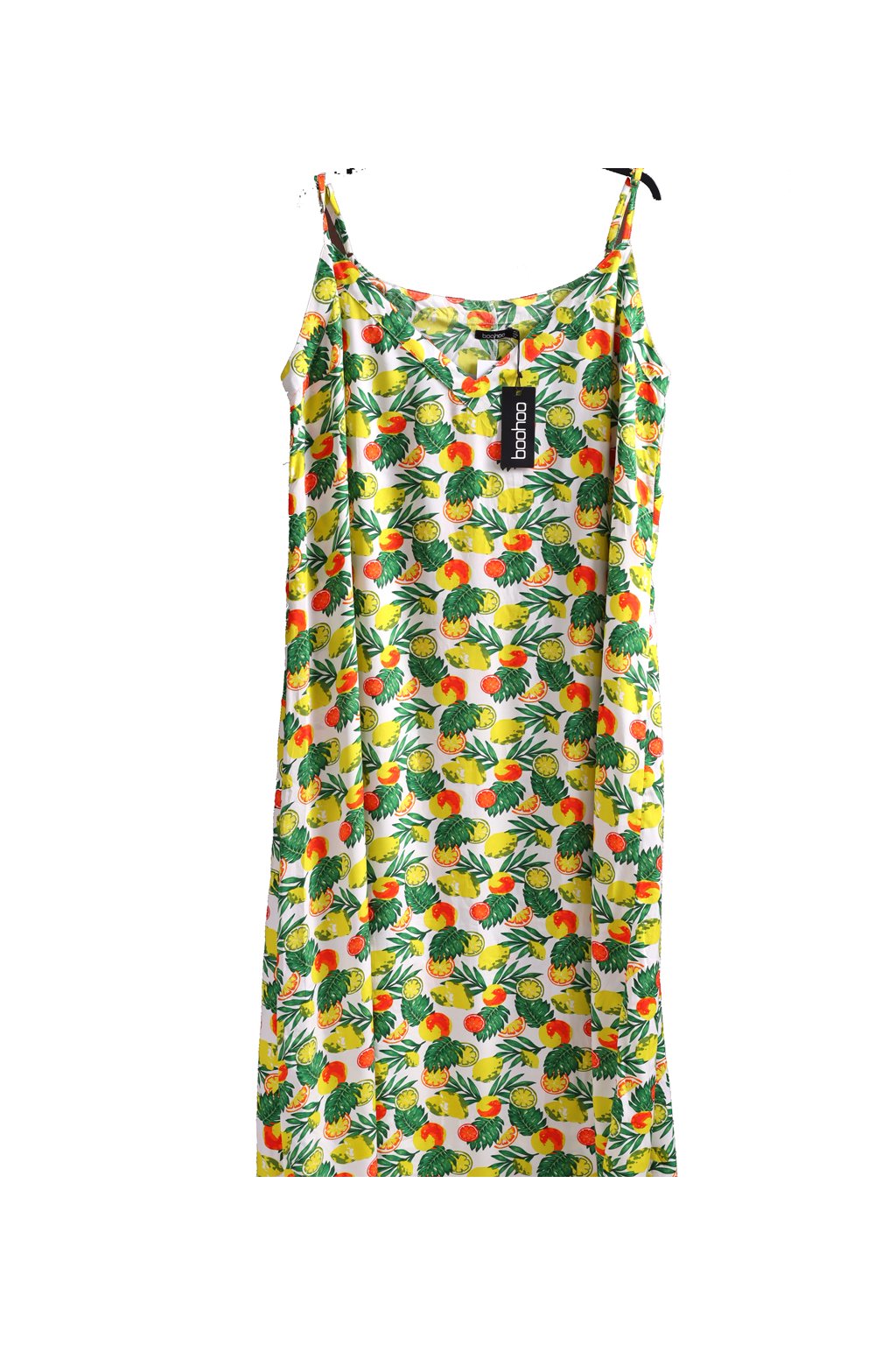 Dámské zelené lehké letní dlouhé šaty s citrusy / BOOHOO / XXXL (50) / UK 22 / ANGLIE