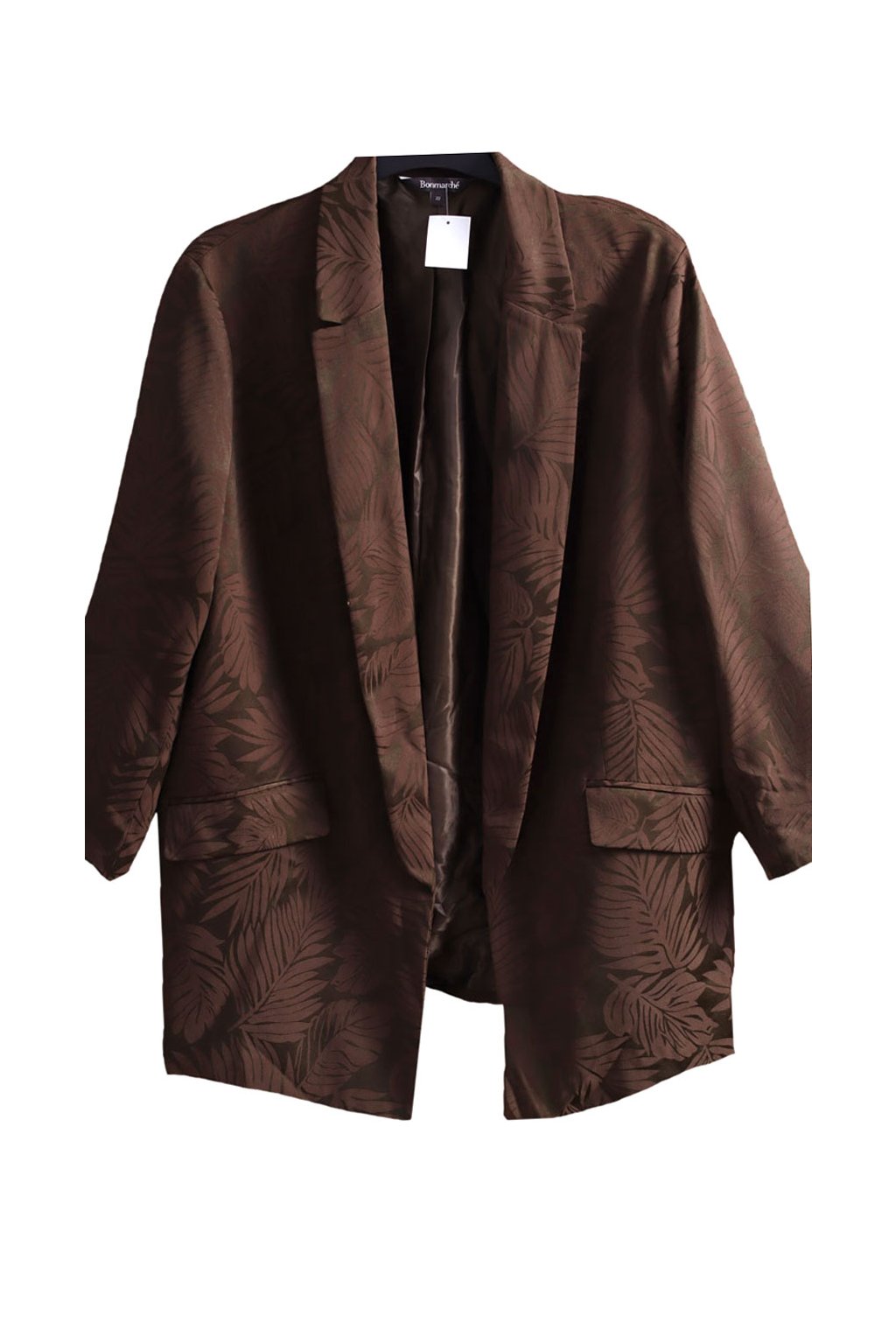 Dámské hnědo/zelené podzimní sako se vzorem, bez zapínání / BONMARCHÉ / XXXL (50/52) / UK 22/ ANGLIE