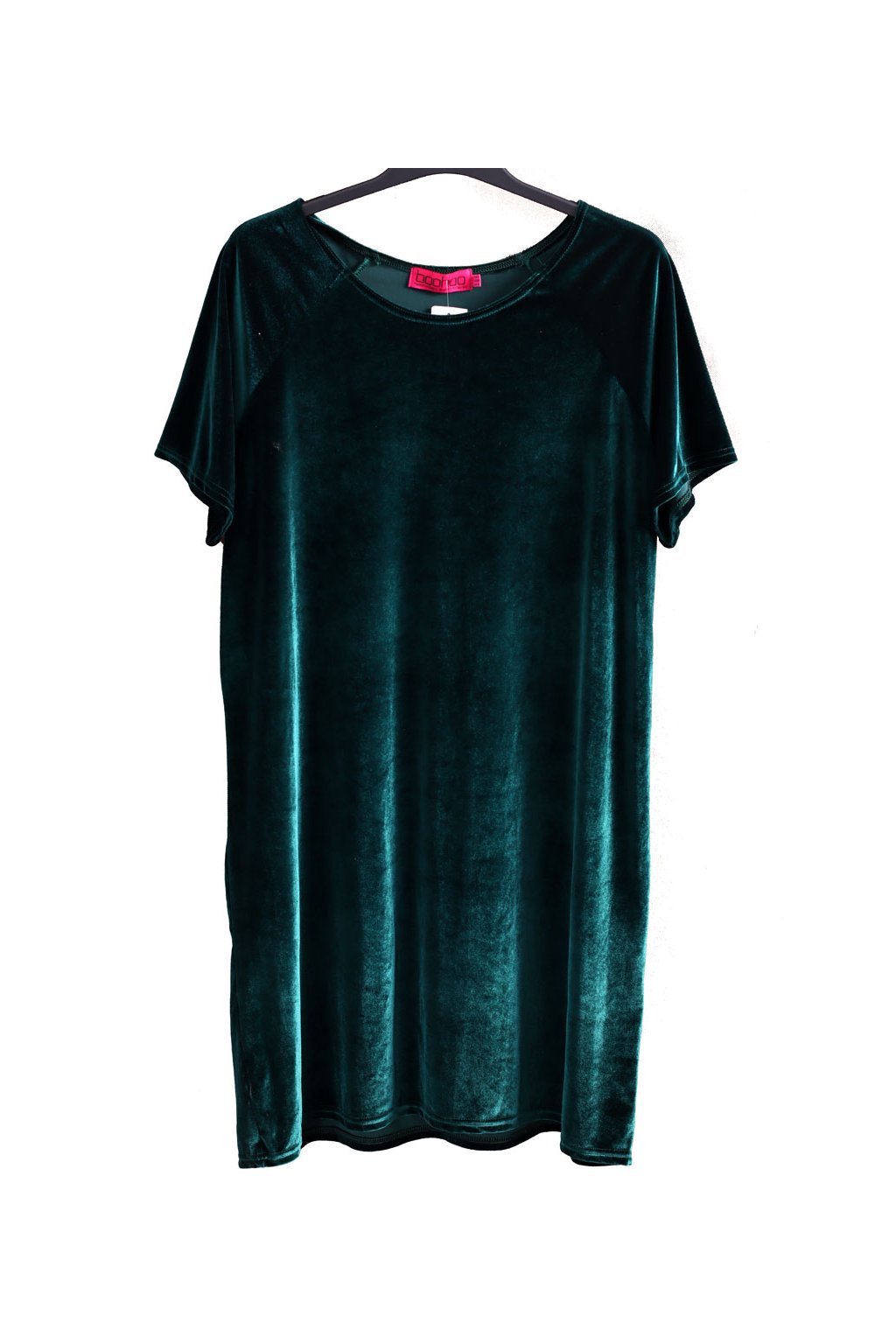 Dámské zelené sametové zimní šaty / BOOHOO / XXXL (50) / ANGLIE - UK 22