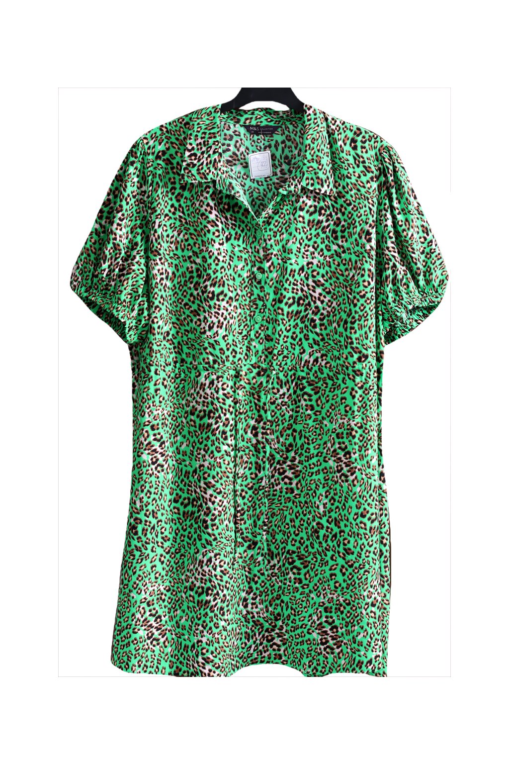 Dámské zelené šaty s leopardím vzorem / M&S / XXXXL (50) / UK 22 / ANGLIE