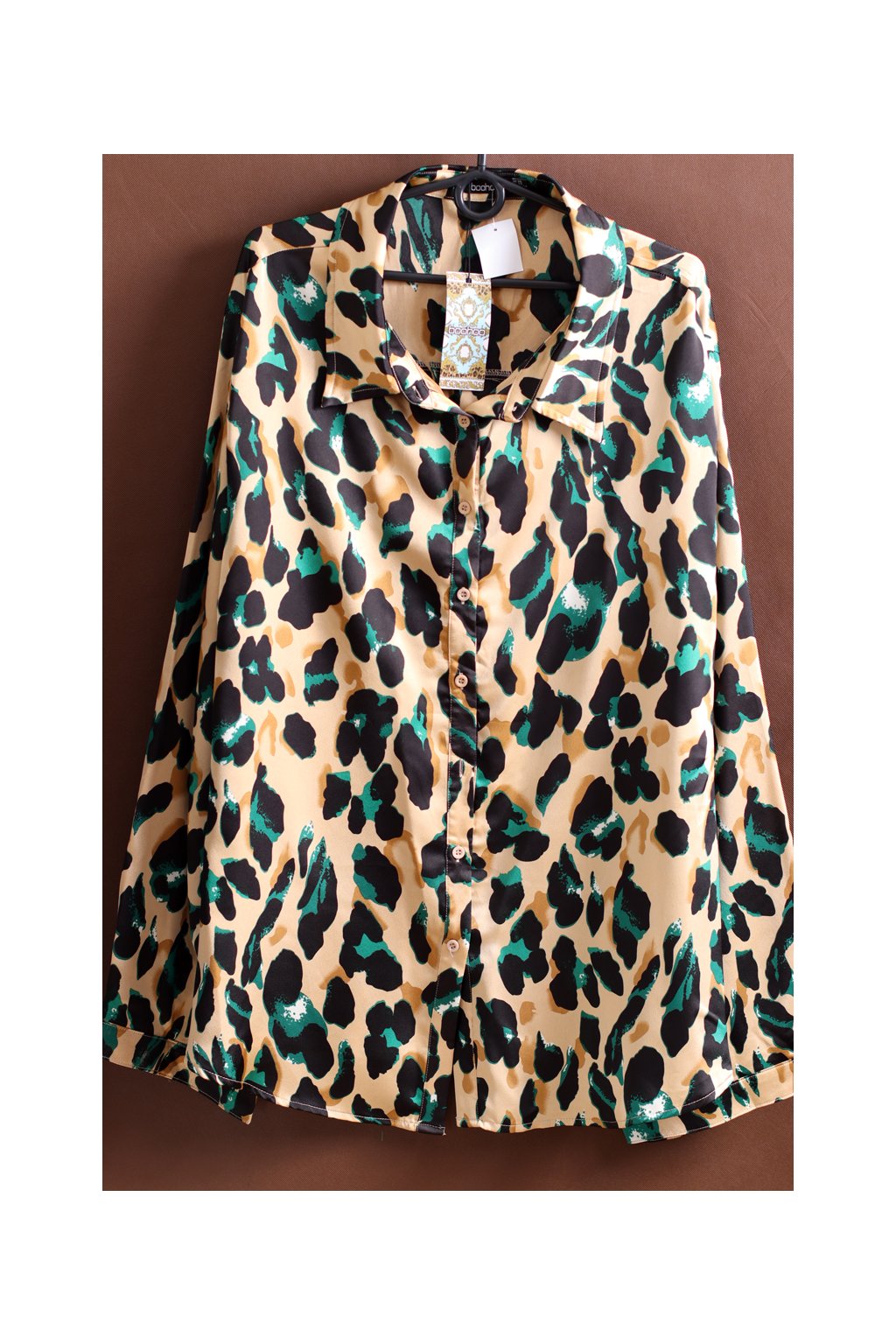 Dámská béžovo-hnědo-zeleno-černá halenka s leopardím vzorem / BooHoo - XXXXL (54/56) / ANGLIE