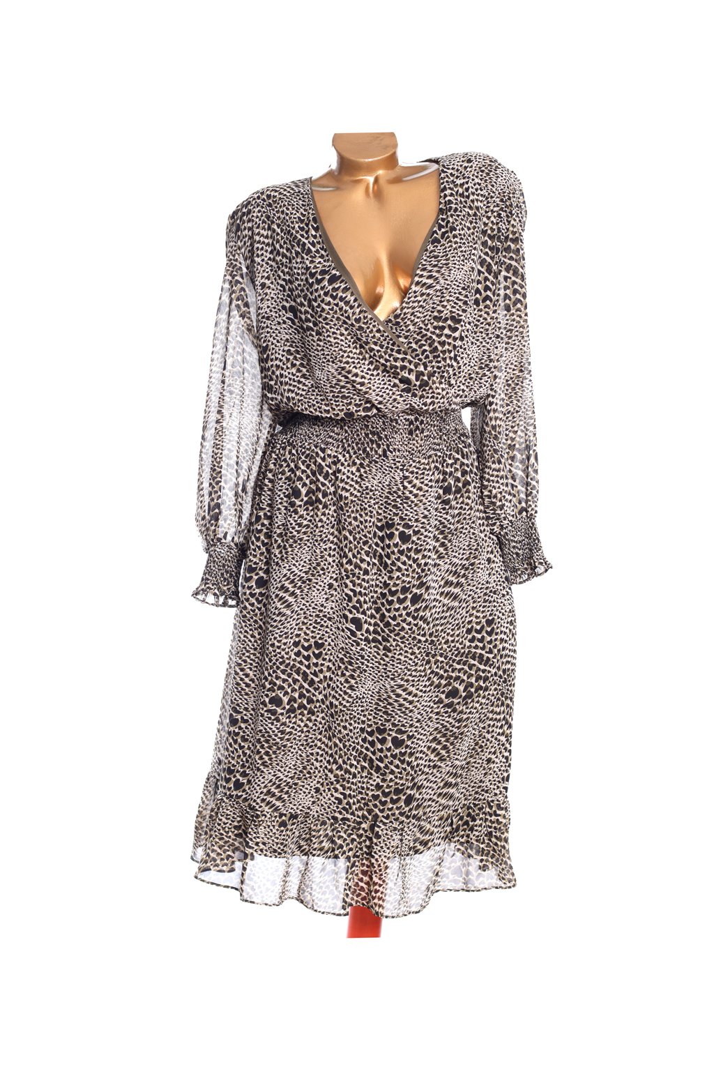 Míry: délka - 115 cm, prsa - 128-132 cm, pas - 120-126 cm, spodní lem - volný, rukáv - 62 cm
