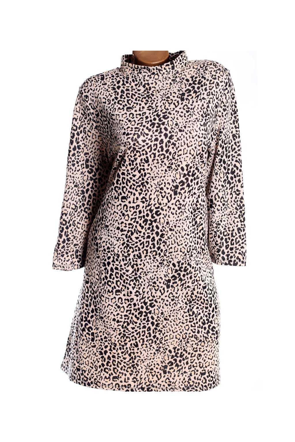 Dámské zimní béžovo-černé šaty s leopardím vzorem / PEACOCKS / XXL (46) / UK 18 / ANGLIE