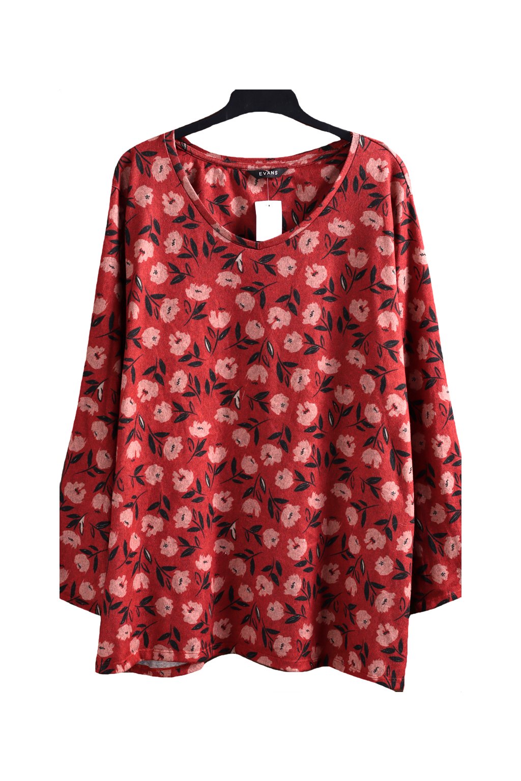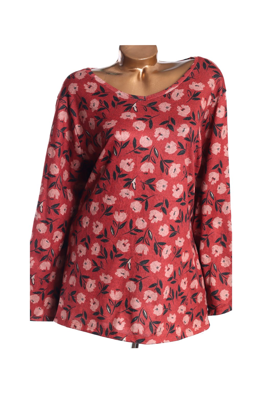 Dámské zimní červené šaty/delší svetrová halenka s květy / EVANS / XXXXL (50/52) / UK 22/24 / ANGLIE