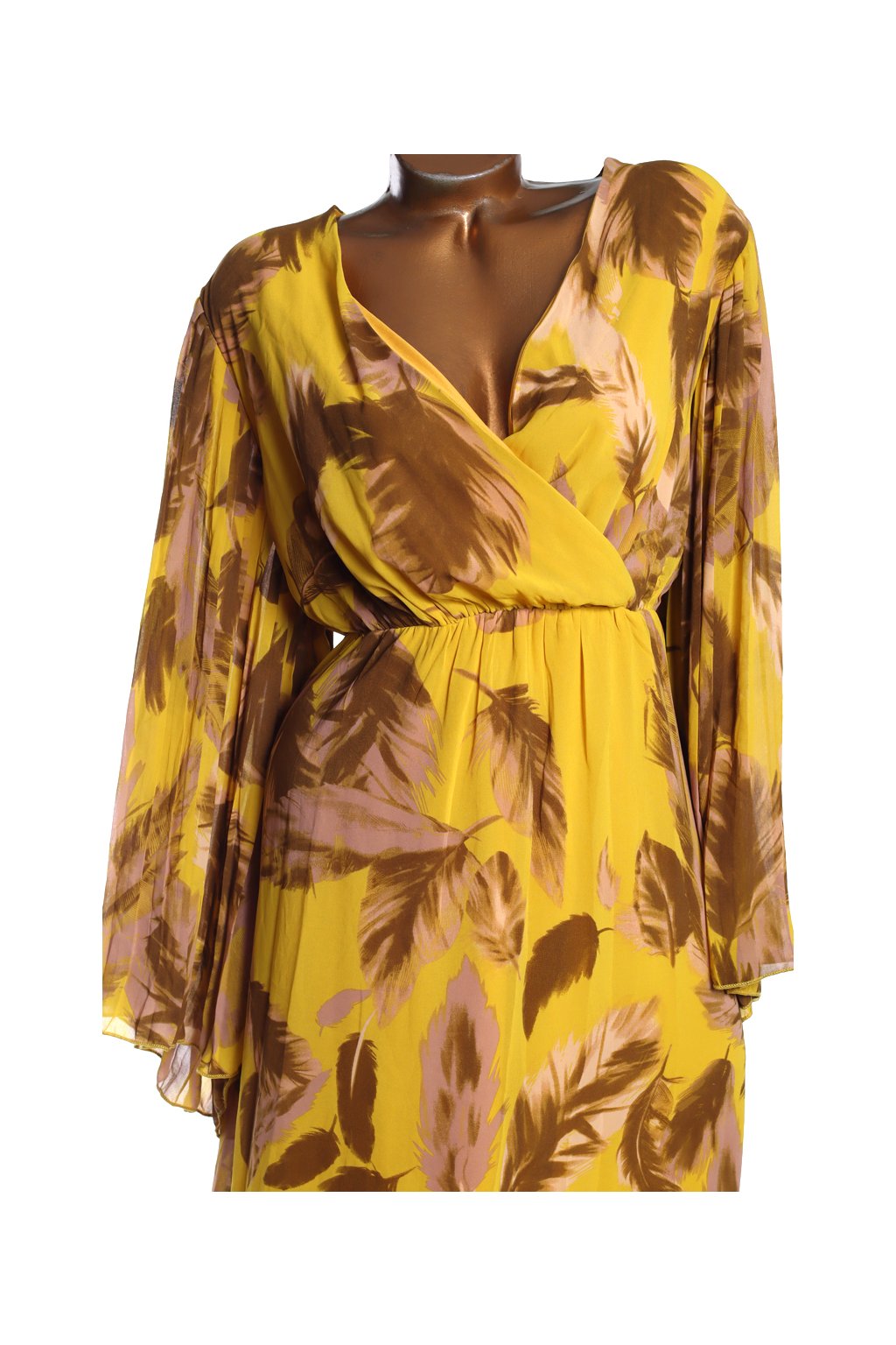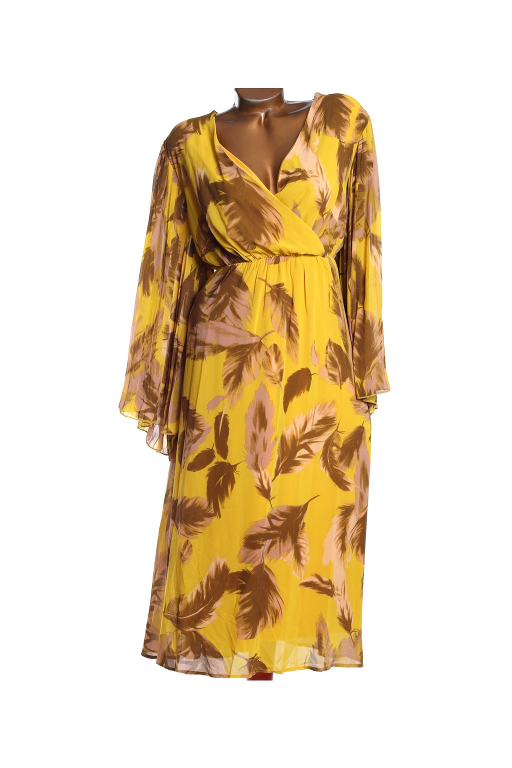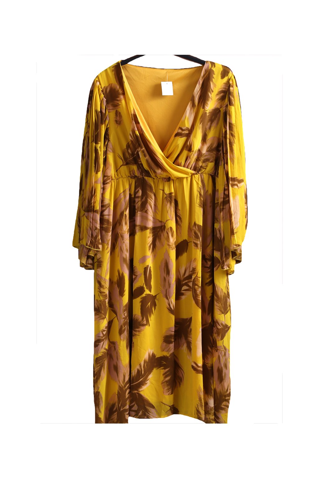 Dámské žluté šaty s hnědými peříčky / XXXL (50/52) / UK 22/24 / ANGLIE