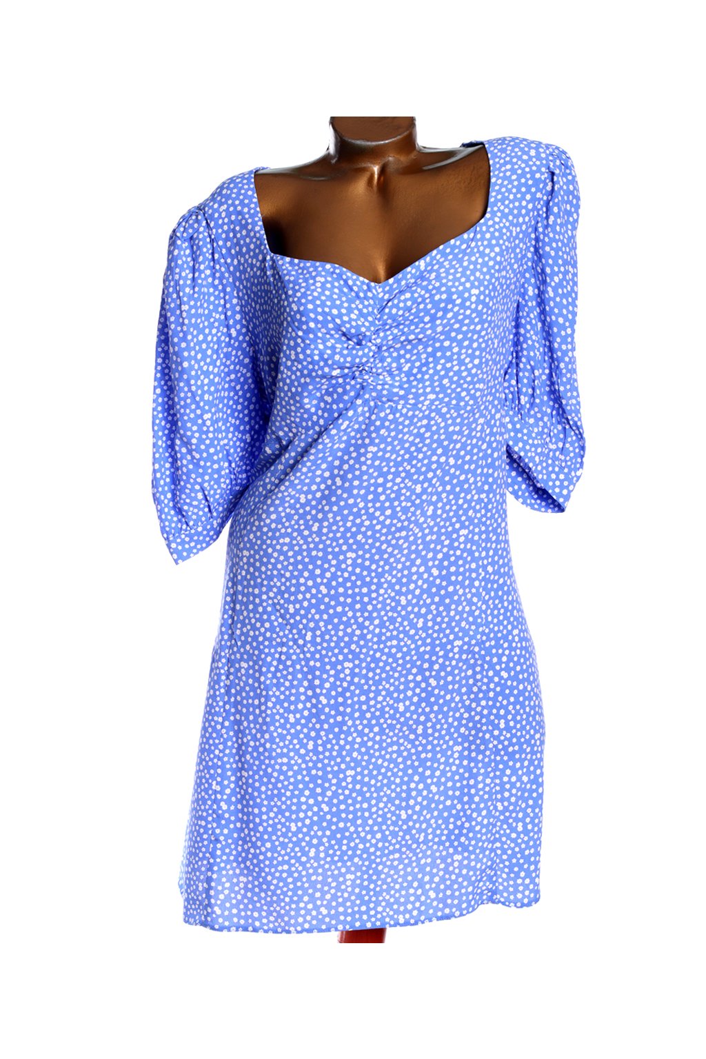 Dámské značkové modré šaty s bílými květy / NOBODYS CHILD / XXXL (50) / ANGLIE (22)
