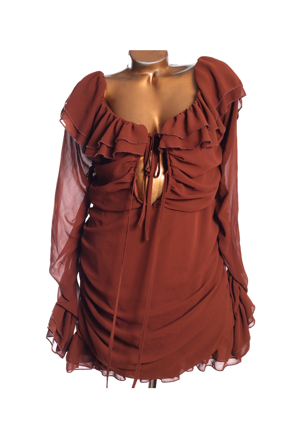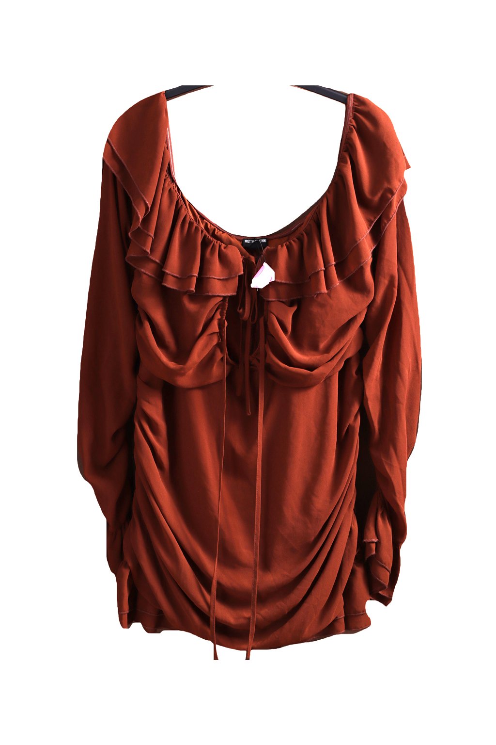 Dámské hnědé šaty s volány a řasením / PRETTY LITTLE THING / XXXL (50) / UK 22 / ANGLIE