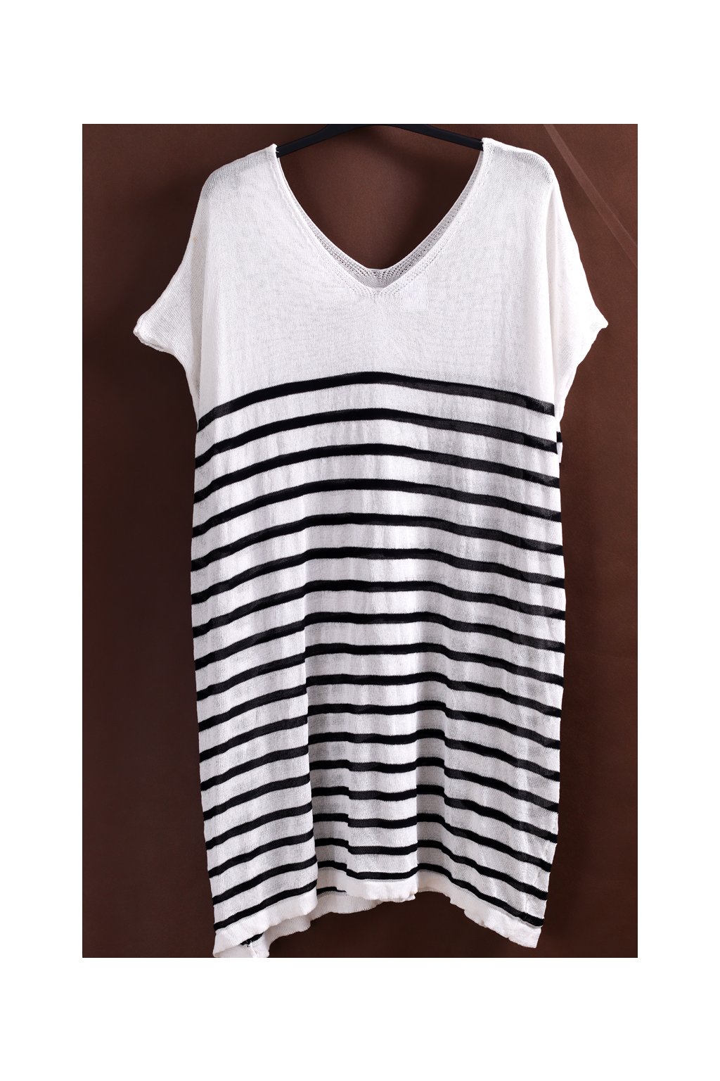 Dámský svetřík/ s černými pruhy a krátkým rukávem / BY VERY / XXXXL+ (56/58) / UK 28/30 / ANGLIE