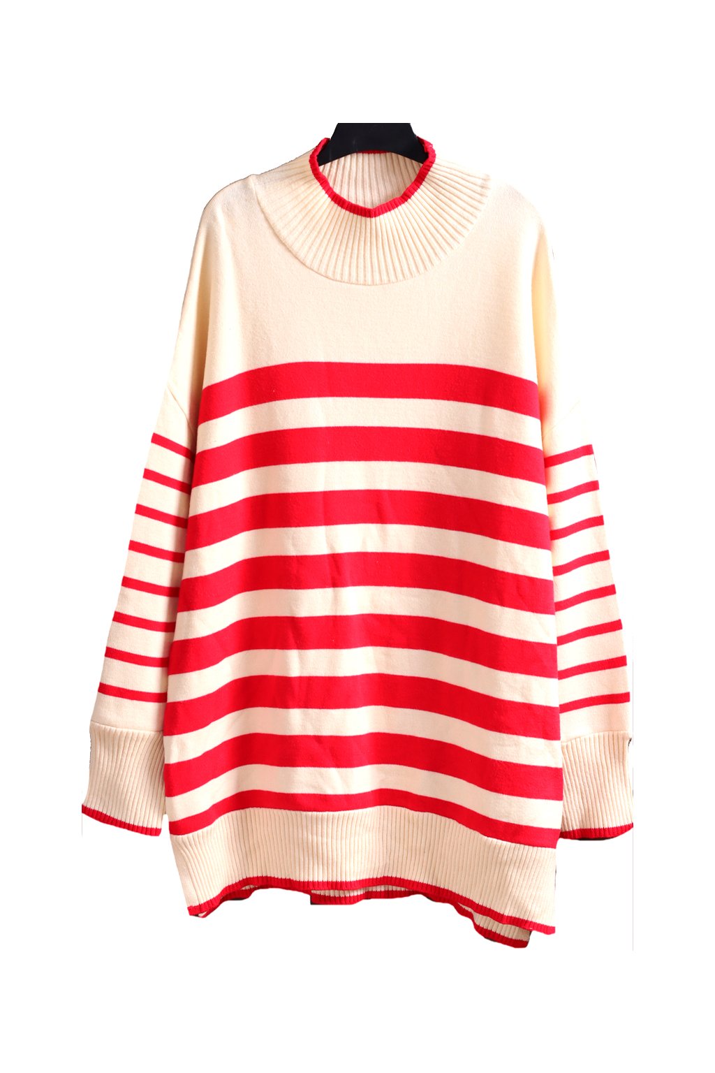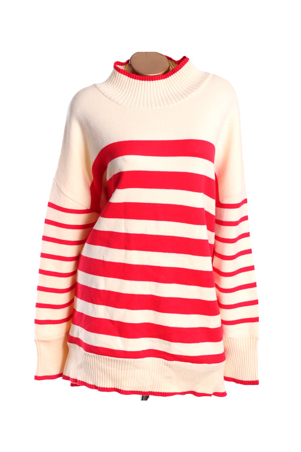 Dámský béžovo-červený pruhovaný rolákový svetr / NEXT / XXL (50/52/54) / UK 24-26 / ANGLIE