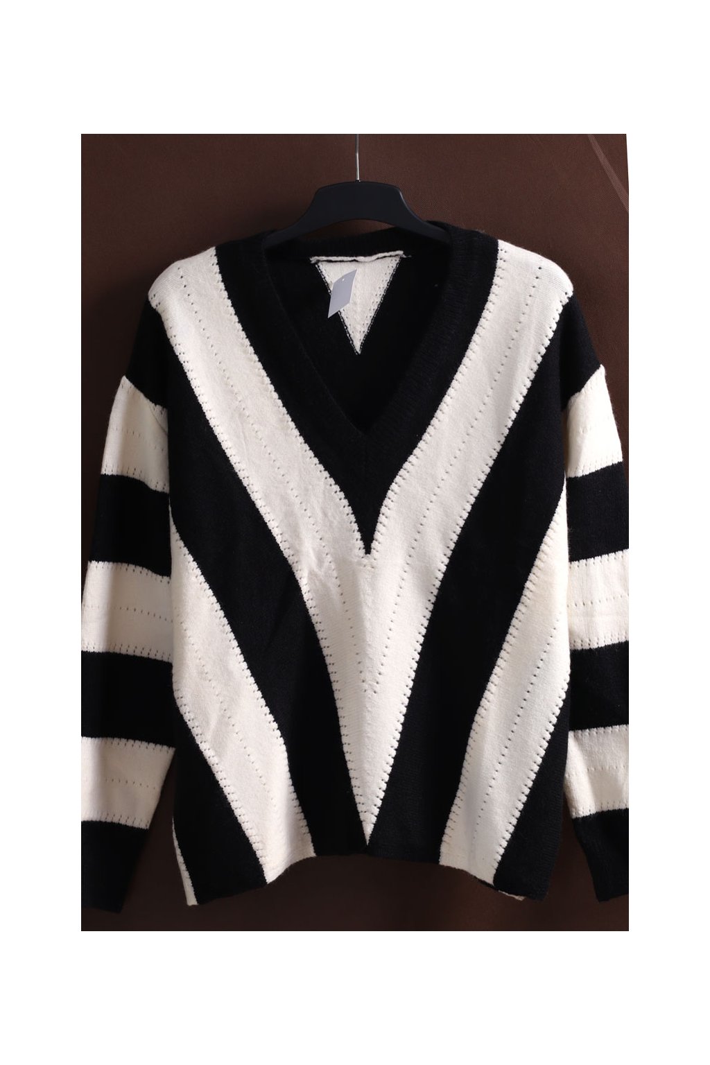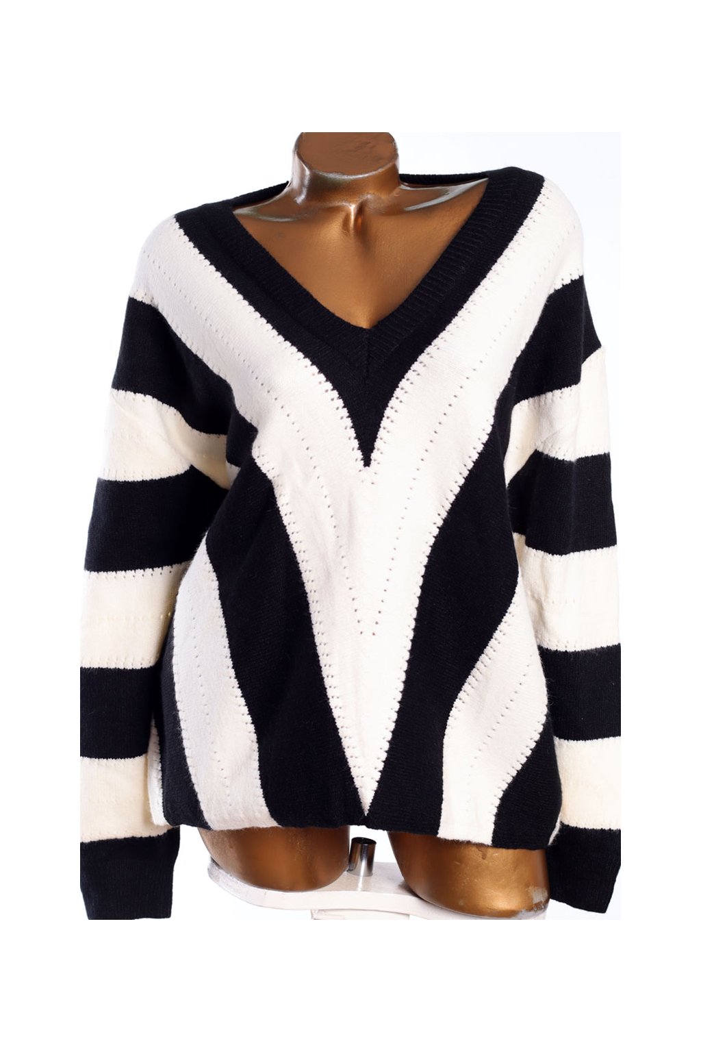 Dámský bílo-černý pruhovaný svetr / XXXXL (54/46) UK 16/18/ ANGLIE