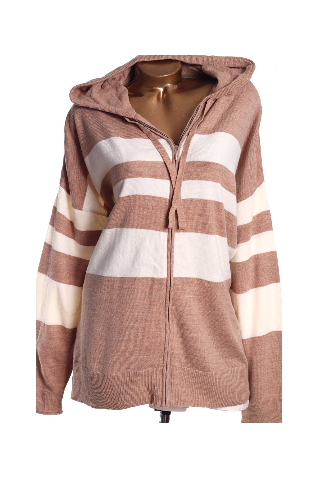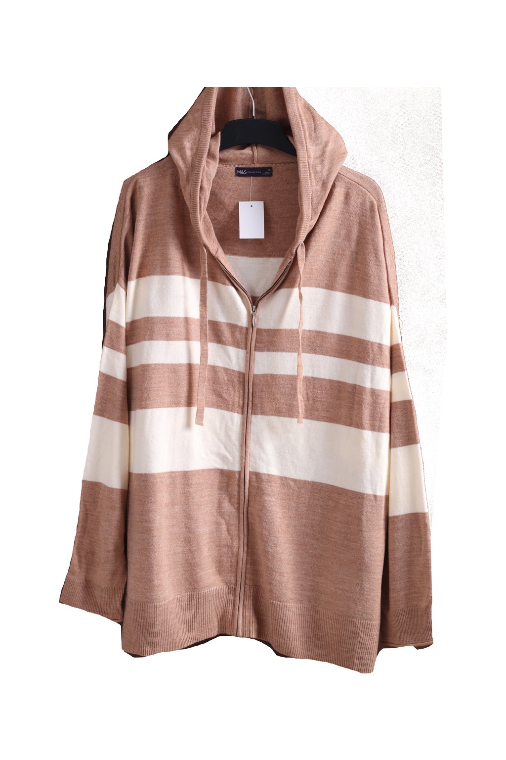 Dámský bílo-hnědý pruhovaný svetřík na zip / M&S / XXL (48/50) / UK 20/22 / ANGLIE
