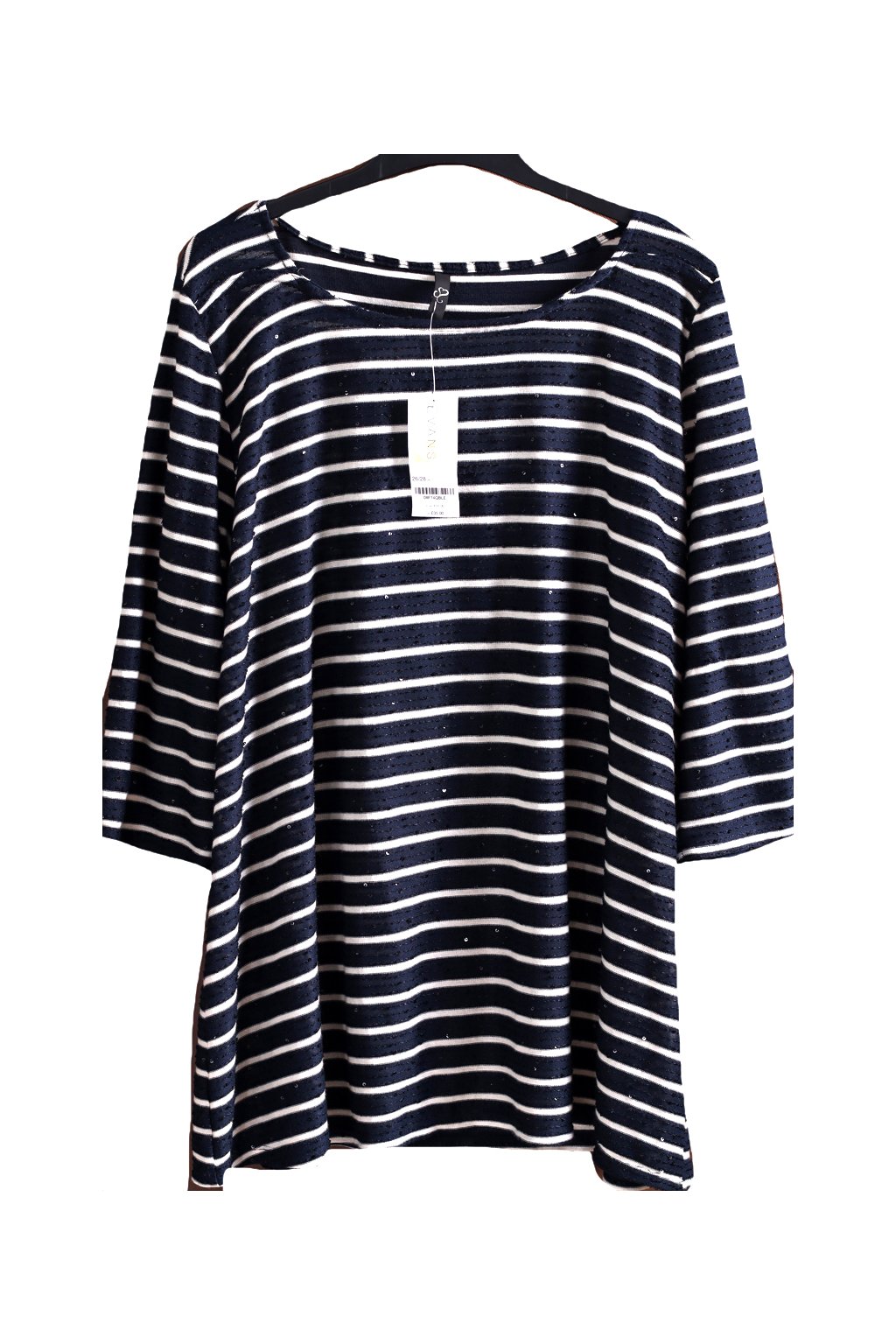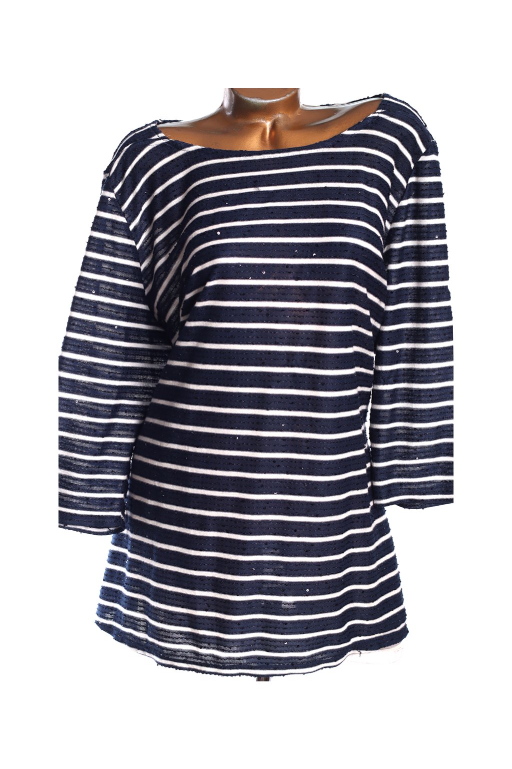 Dámský bílo-modrý pruhovaný svetr s flitry PC - 1500 / EVANS / XXXXL (54/56) / UK 26/28 / ANGLIE
