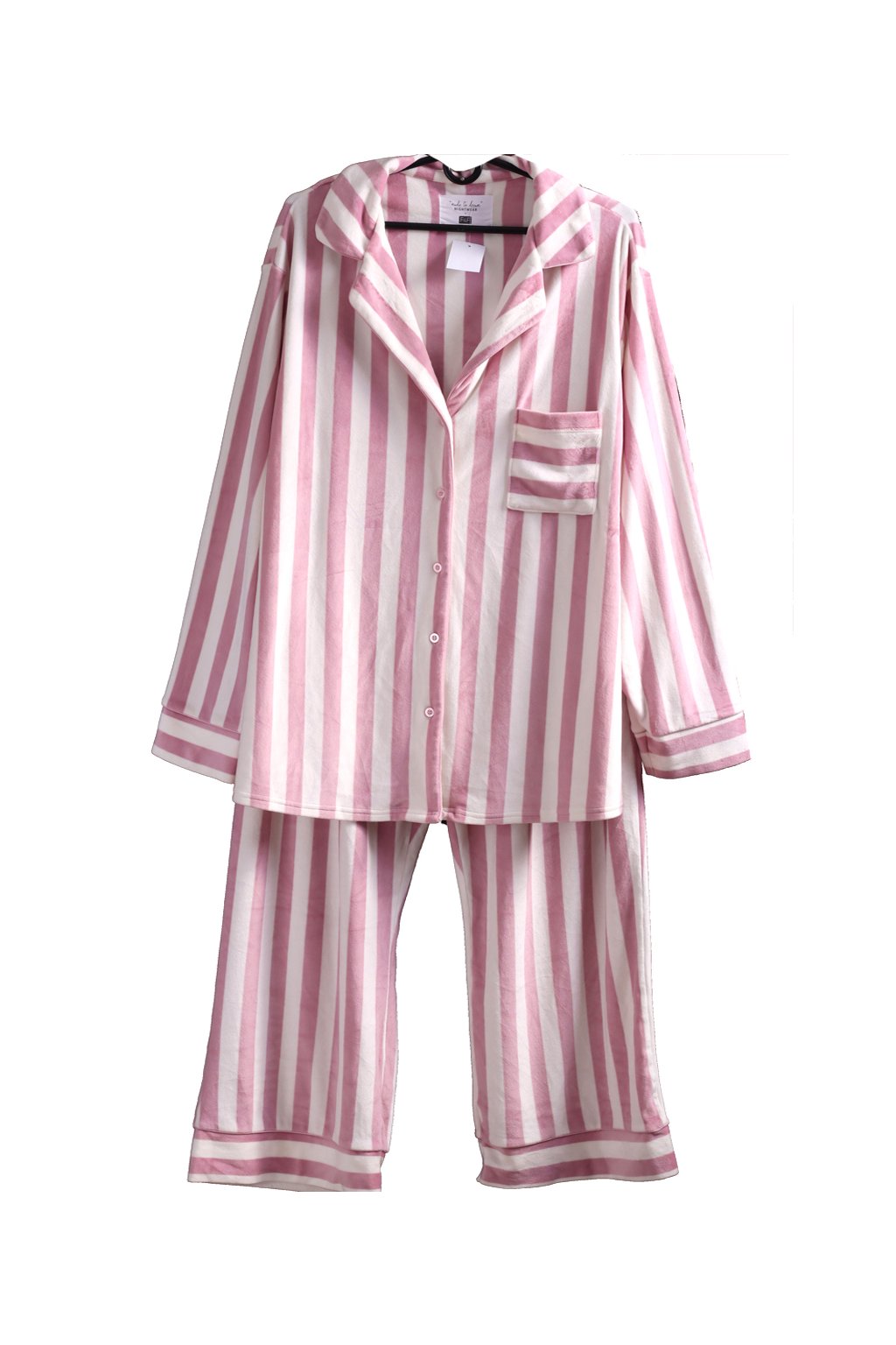 Dámský bílo-růžový pruhovaný teplý domácí komplet/pyžamo/ F&F / XXL (48/50) / UK 20/22 / ANGLIE