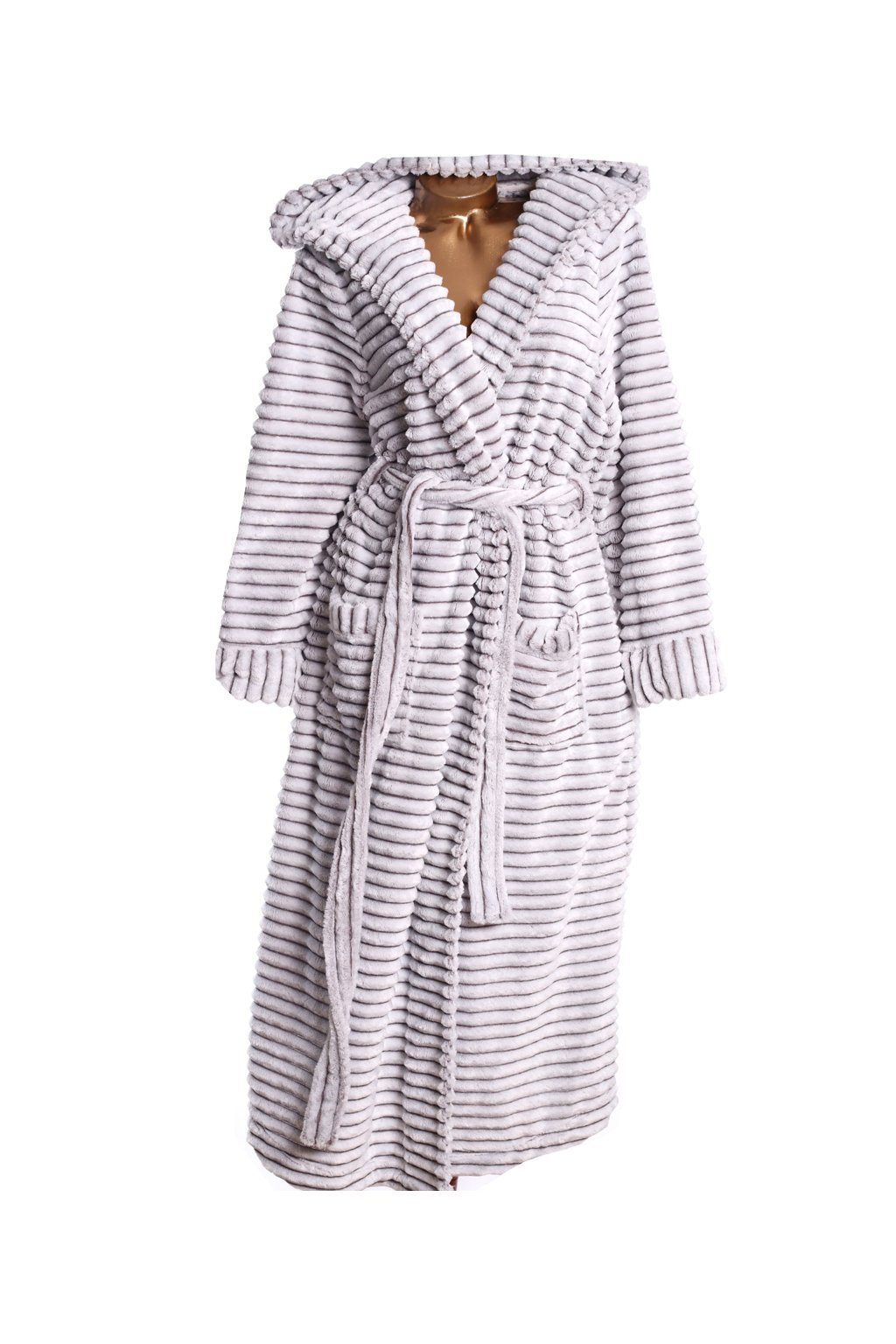 Dámský bílo-šedý žebrovaný teplý župan / PRETTY SECRETS/ XXXL (52/54) / UK 24/26 / ANGLIE