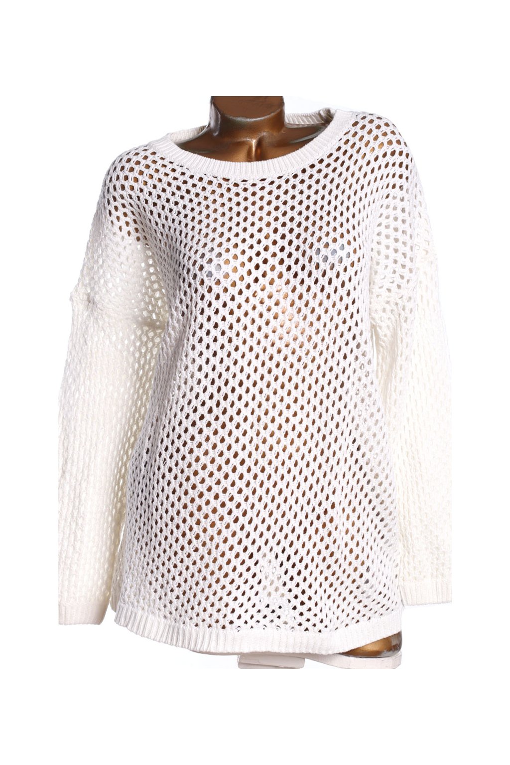 Dámský bílý dirkovaný svetr / SIMPLY BE / XXXL (48/50) / ANGLIE (20/22)