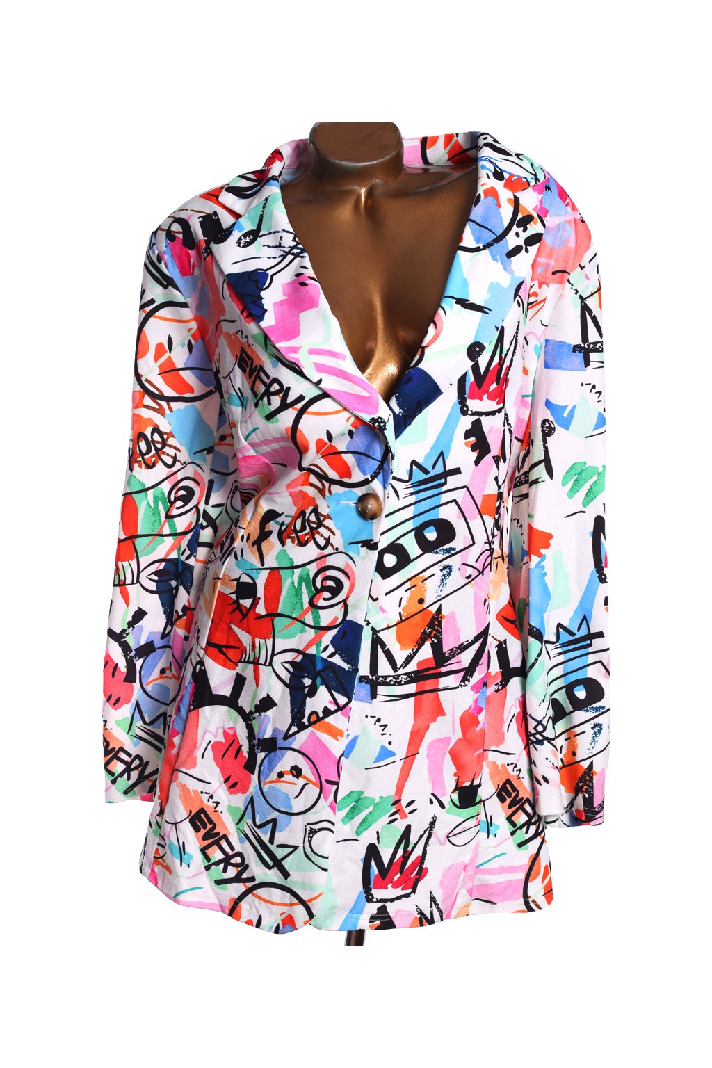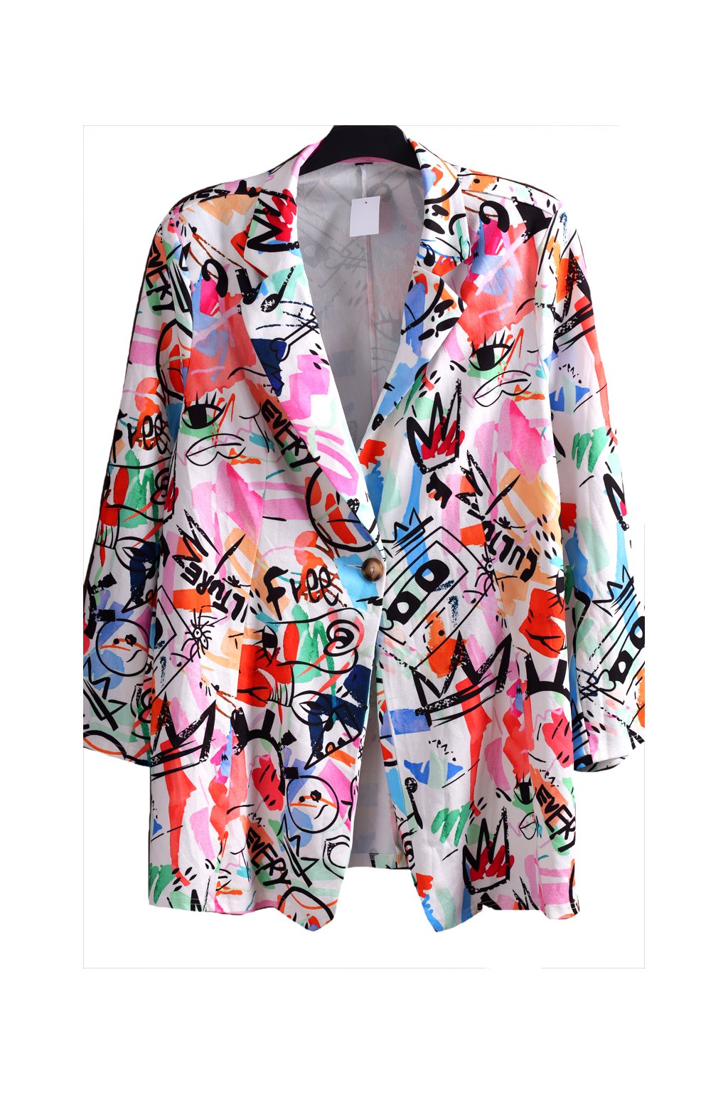Dámský bílý kabátek/ přehoz s barevnými vzory / XXXL (48/50) / / UK 22 / ANGLIE