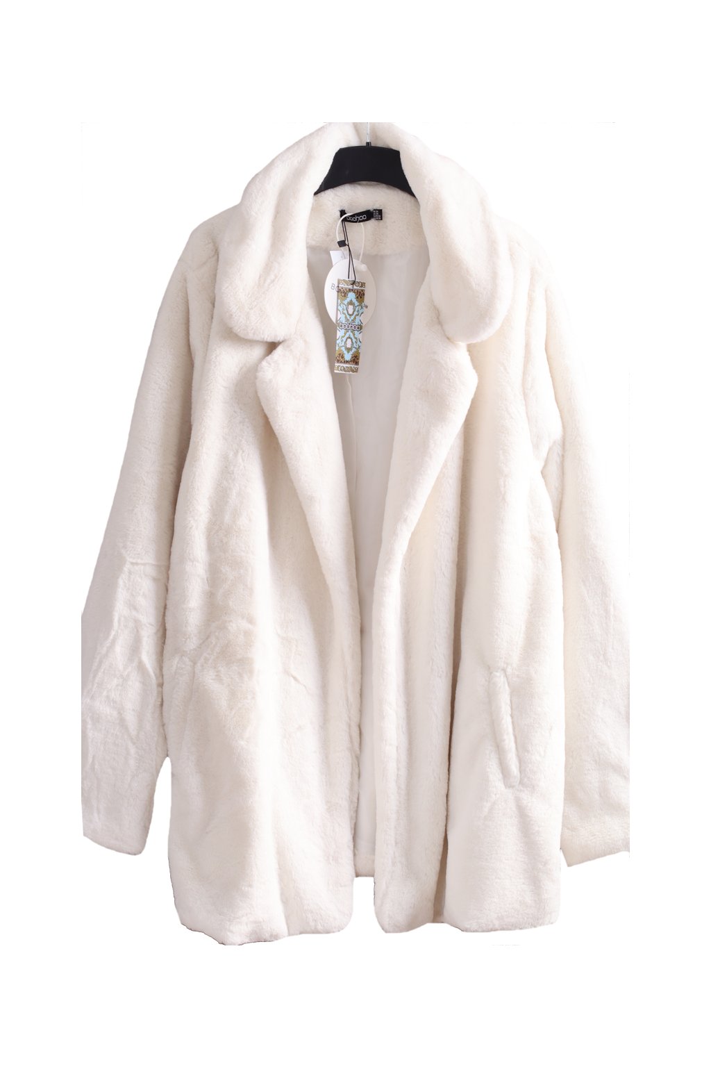 Dámský bílý kožený kabát / BOOHOO / XXXL (52) / UK 24 / ANGLIE