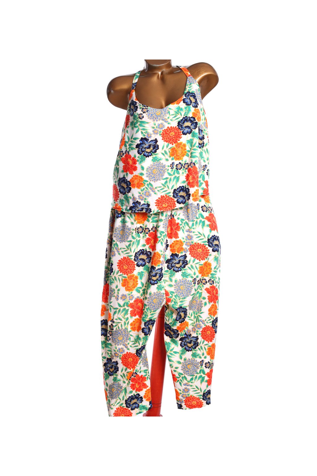Dámský bílý overal s barevnými květy / CAPSULE / XXXXL (52) / UK 24 / ANGLIE
