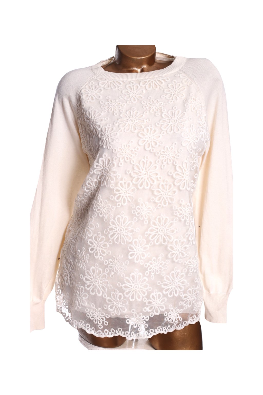 Dámský bílý svetřík se síťkou prošívanou madeirou / ALICE C / XXL (46) / UK 16 / ANGLIE