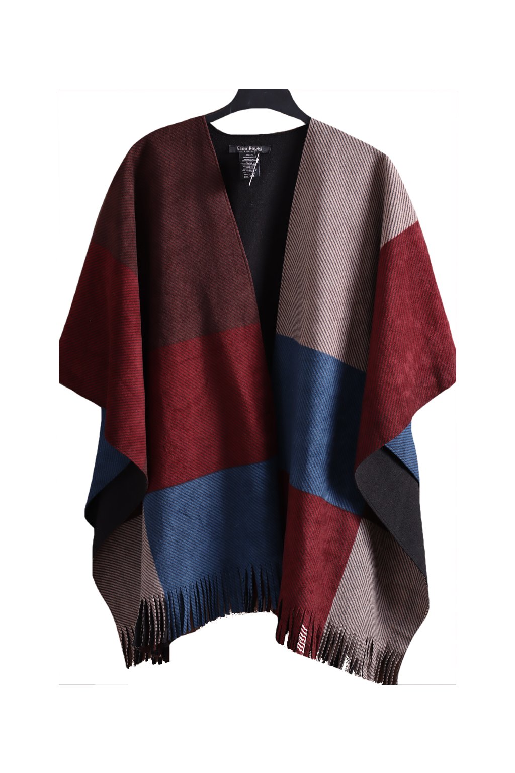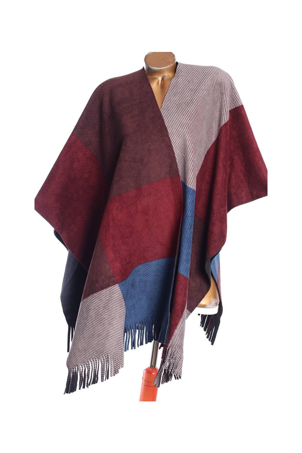 Dámský černo-hnědo-modro-červený vzorovaný přehoz- one size / ELLEN REYES / XXXL 50/52/54/56+ / UK 22/24/26/28+ / ANGLIE