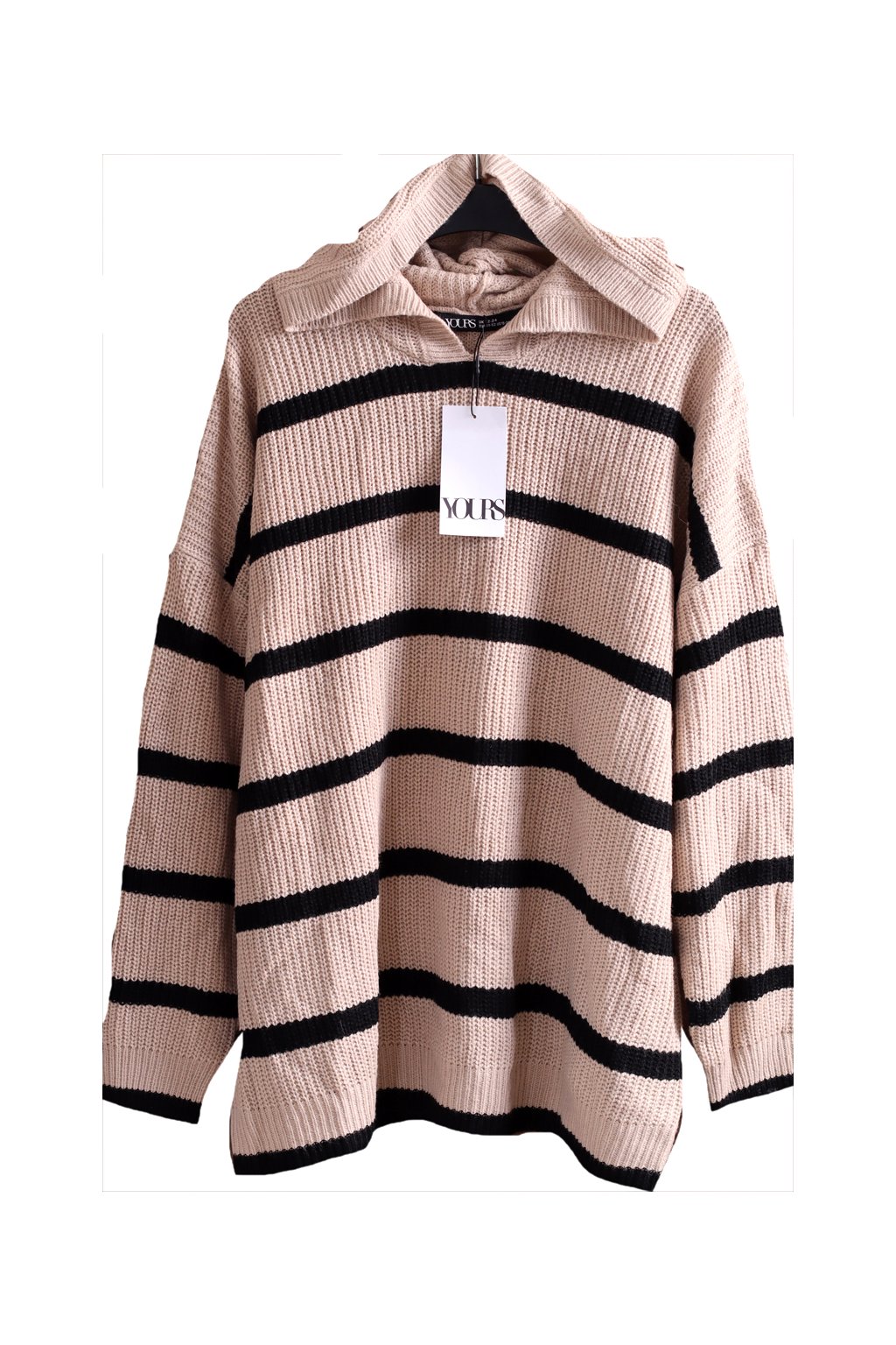 Dámský černo-hnědý pruhovaný svetr s kapucou / YOURS //XXXXL+ (50/52/54+) / UK 22 / ANGLIE
