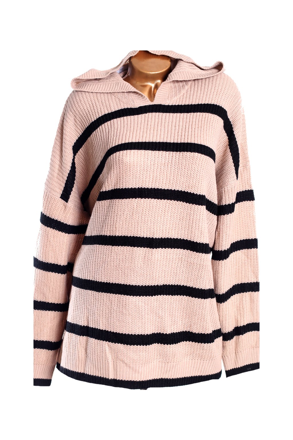 Dámský černo-hnědý pruhovaný svetr s kapucou / YOURS //XXXXL+ (50) / UK 22 / ANGLIE