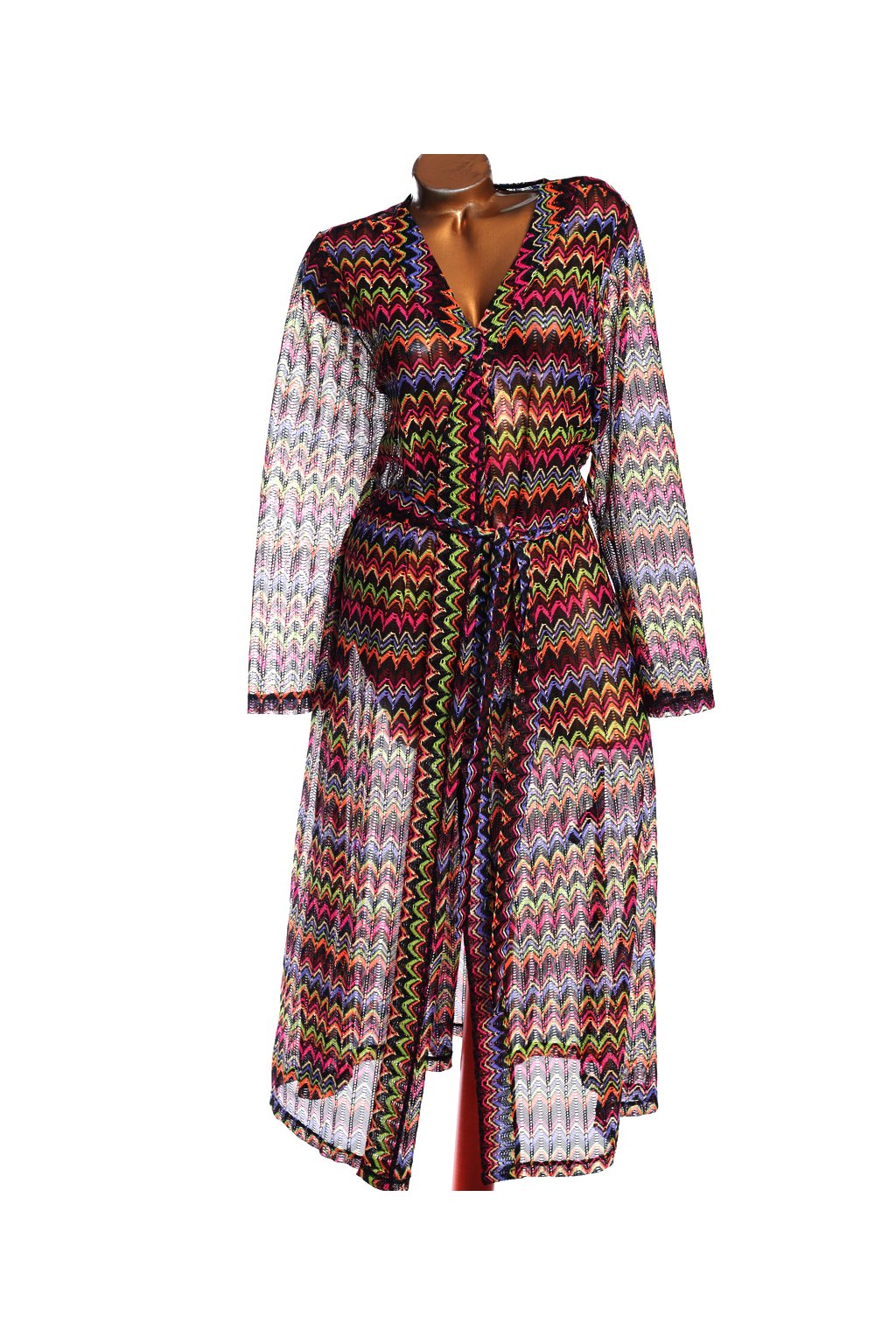 Dámský jemný, dlouhý, průhledný, barevný cardigan / Be Very / XXXXL (54) / ANGLIE - UK 26