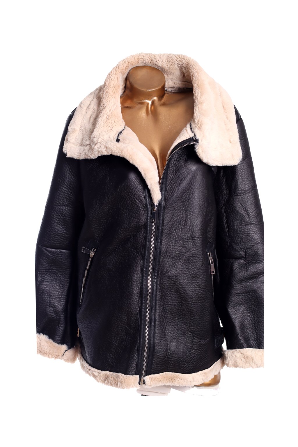 Dámský černý křivák s kožíškem - zimní / PRIMARK / XXL (48/50) / UK 20 / ANGLIE