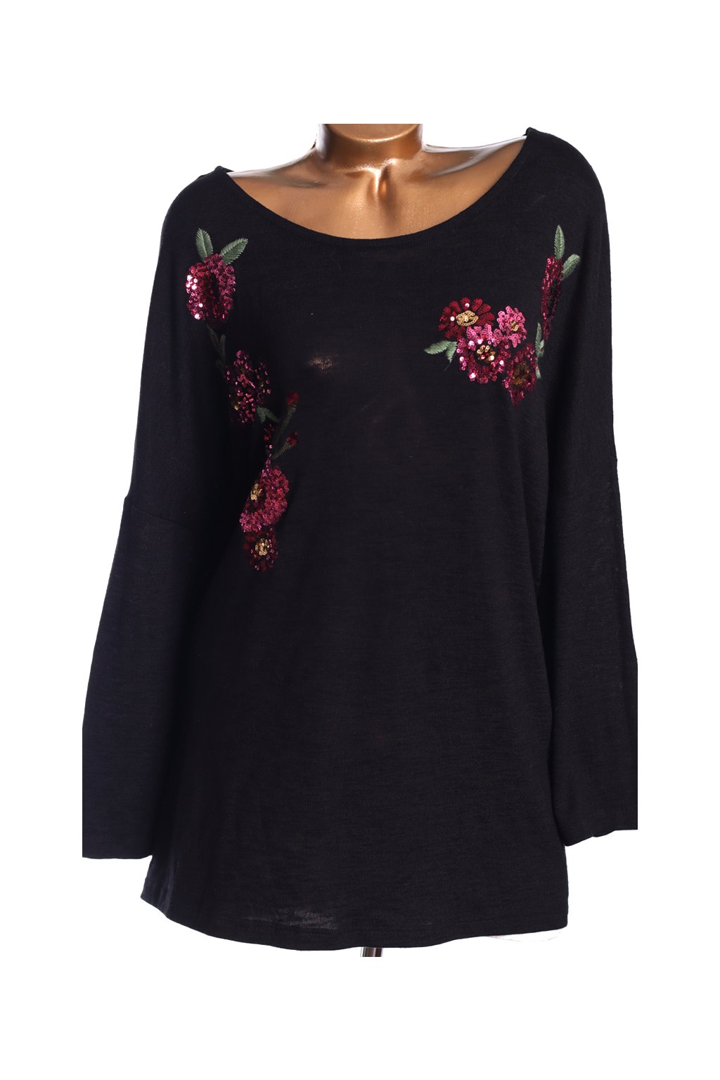 Dámský černý svetřík s flitrovými květy / TU - XXXXL (54) / UK 26 / ANGLIE