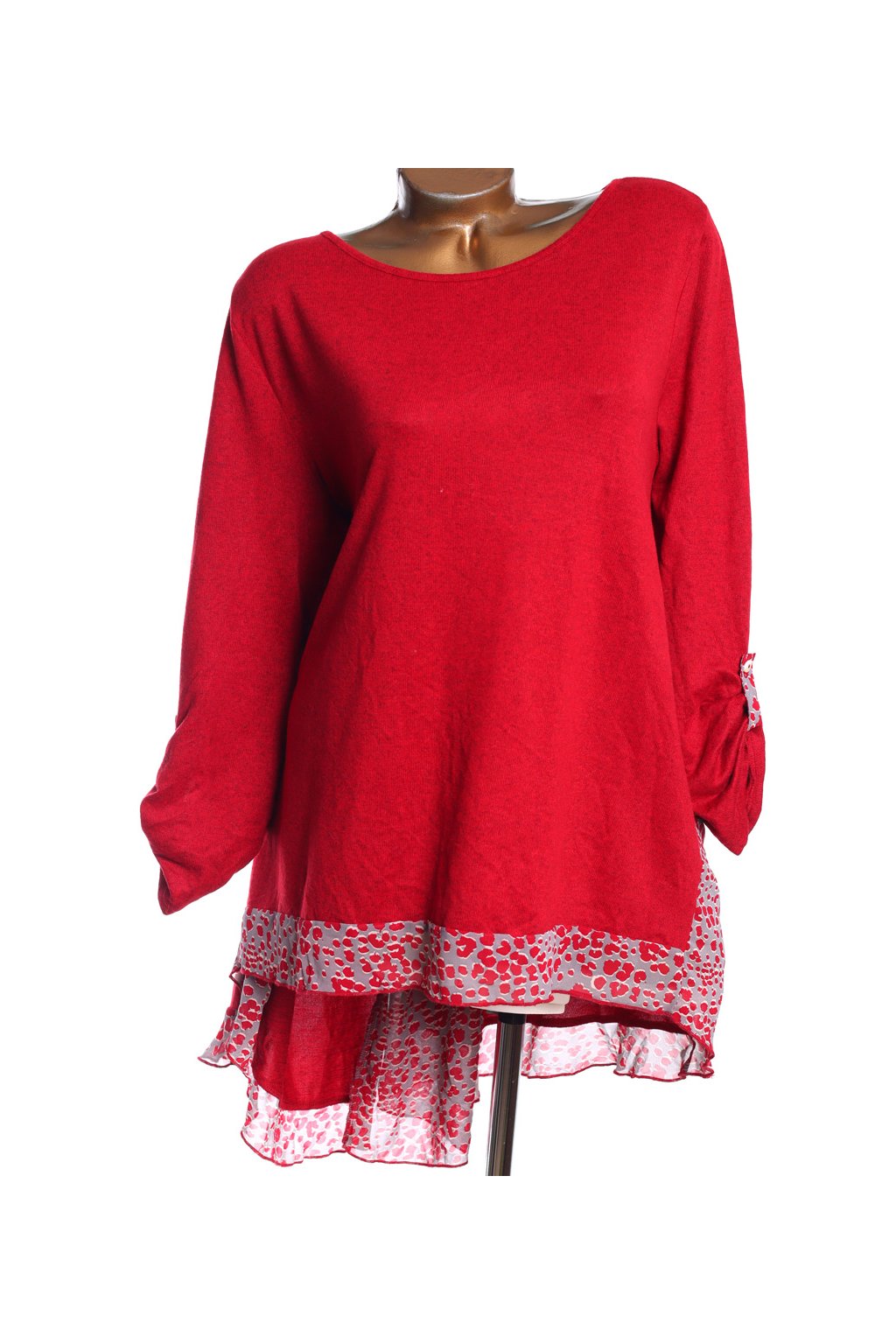 Dámský červený lehčí upletový svetřík / KLASS- XXL (48/50+) / ANGLIE