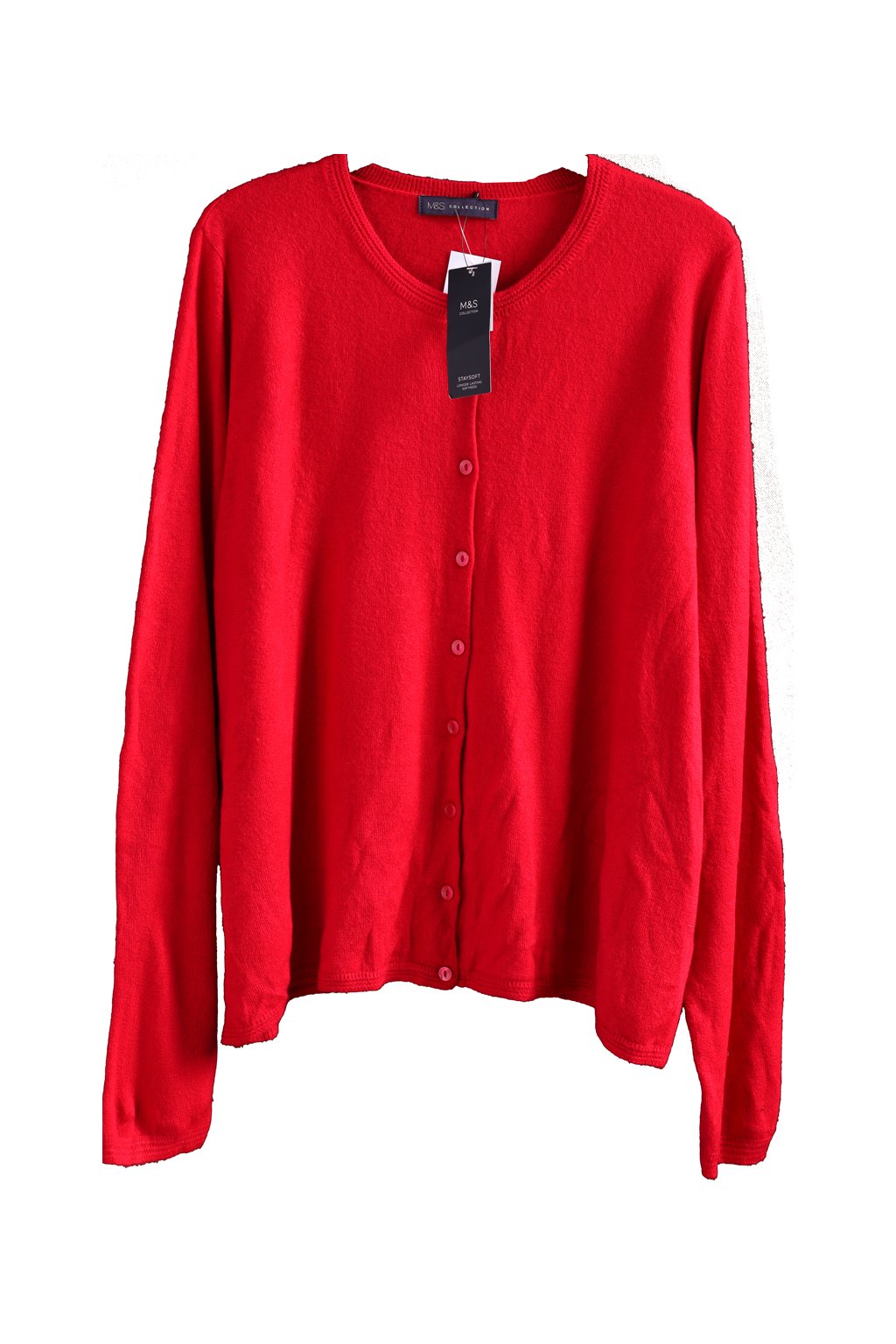 Dámský červený propínací svetřík / Marks&Spencer / XXXL (50) / UK 22 / ANGLIE