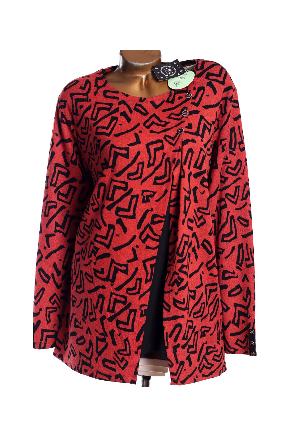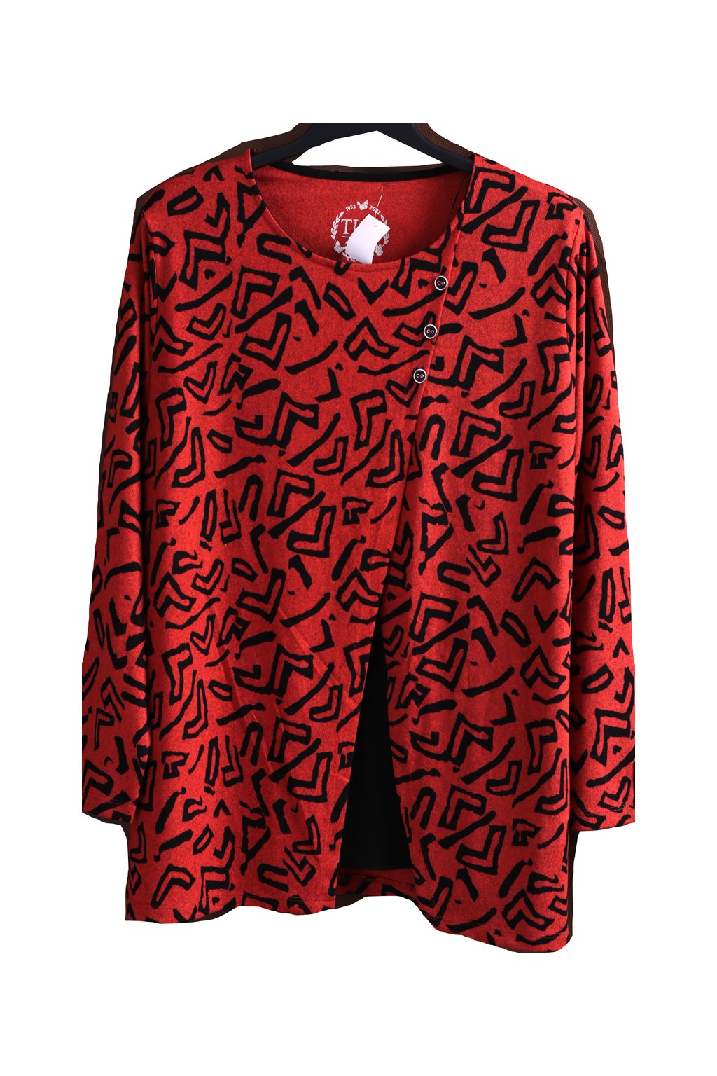Dámský cihlovo-černý vzorovaný příjemný svetřík / TIGI / XXXL (50/52) / UK 22/24 / ANGLIE