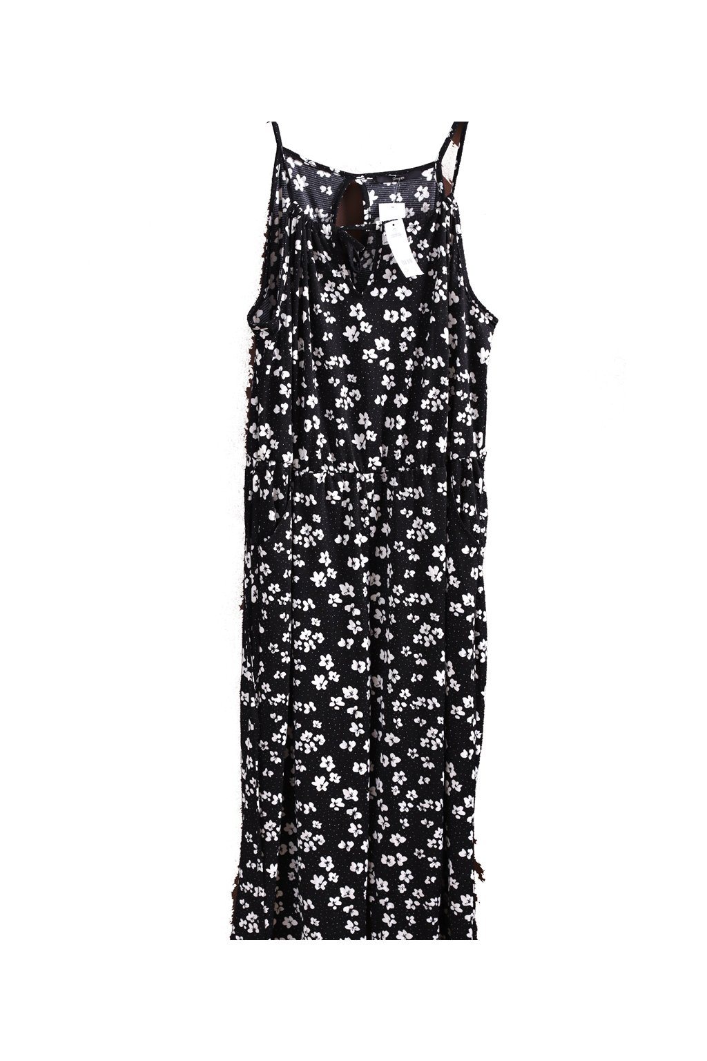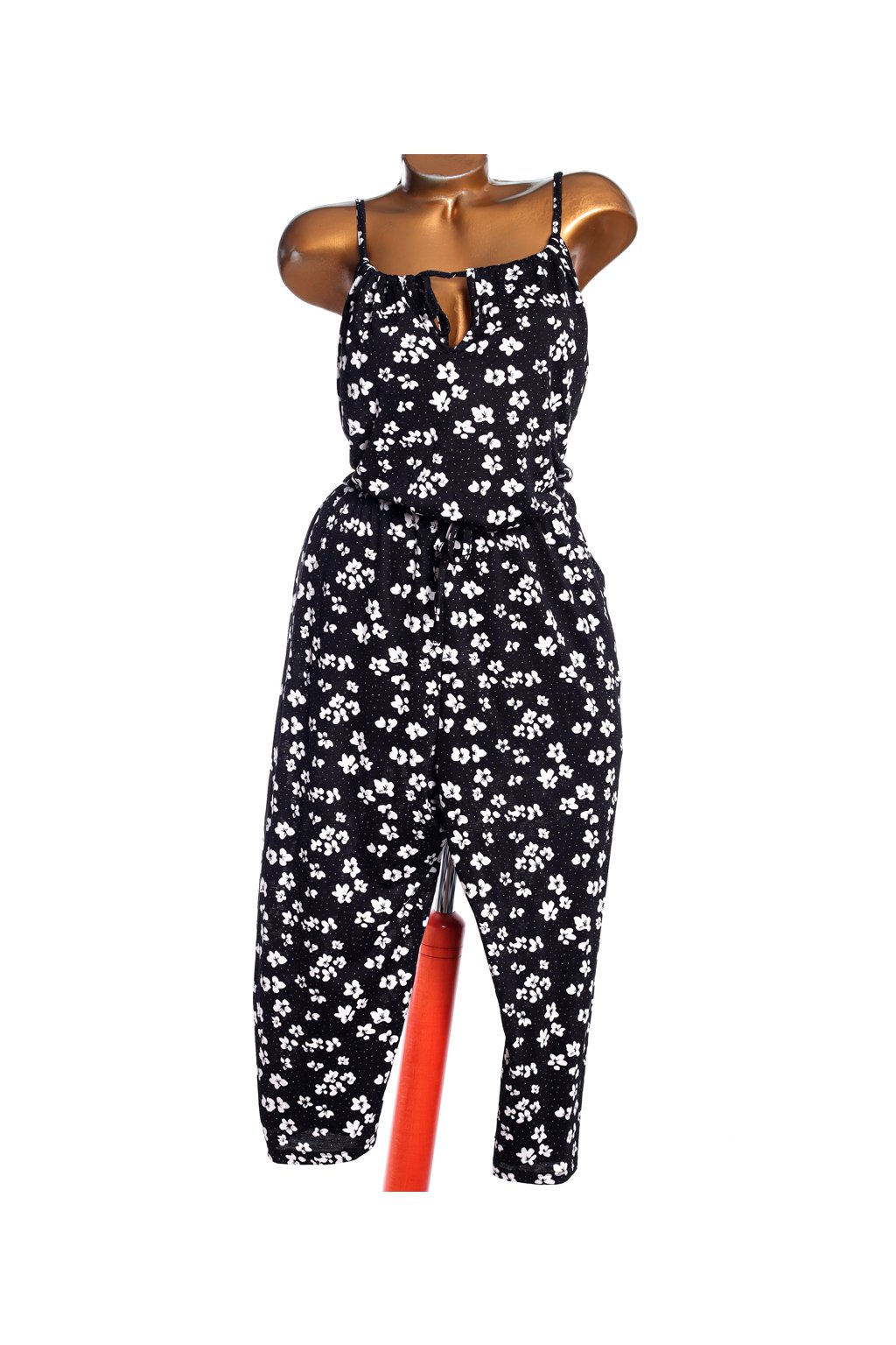 Dámský ELASTICKÝ černý overal se vzorem bílých kytiček / GEORGE/ XXXL (48/50) / UK 22 / ANGLIE