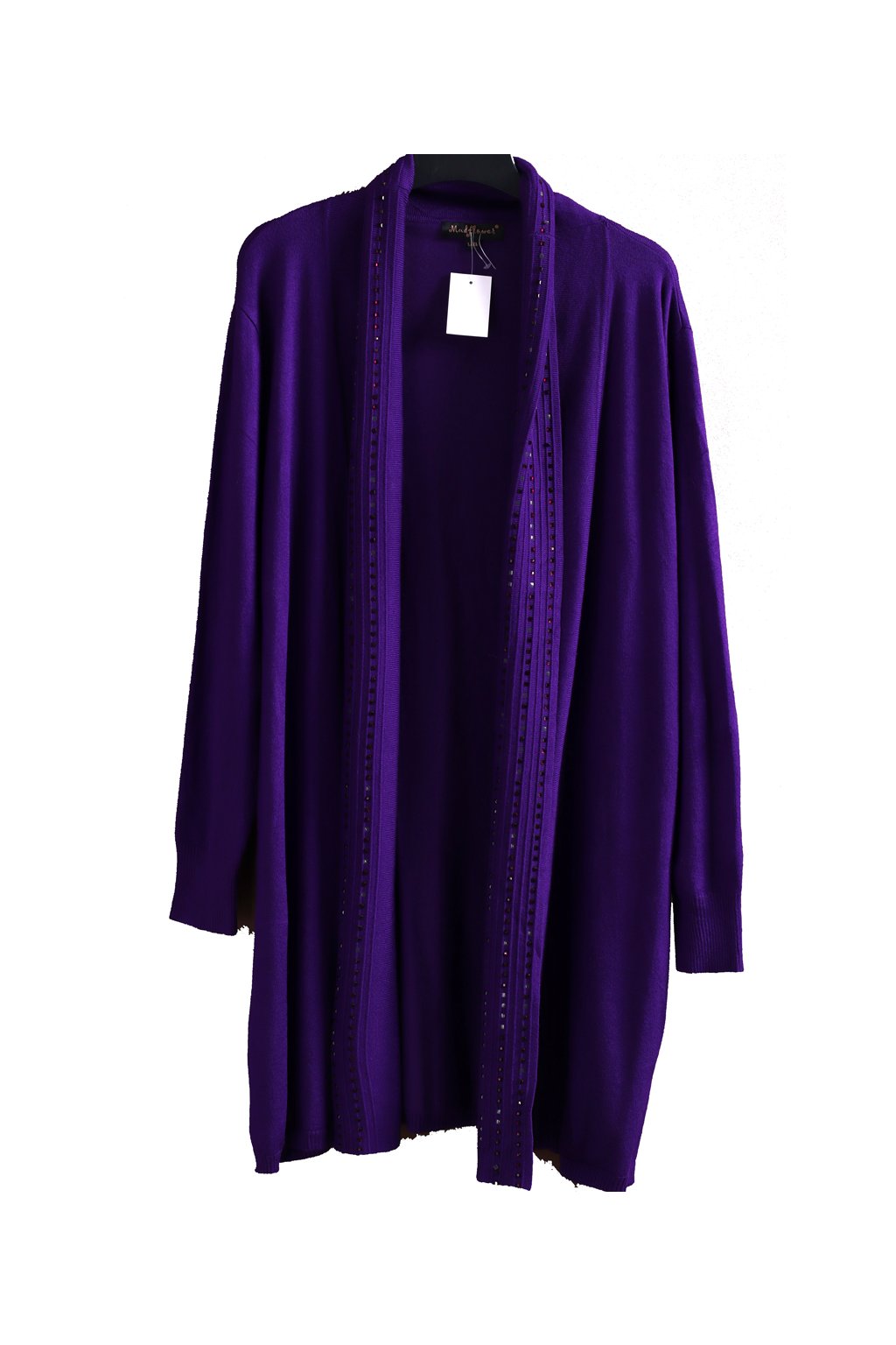 Dámský fialový svetrový kardigan s kamínky / MUD FLOWER / / XXXL (46/48) / UK 18/20 / ANGLIE