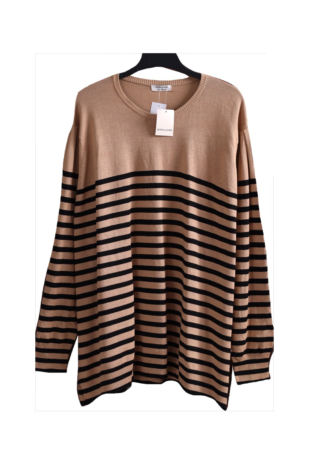 Dámský hnědo-černý pruhovaný svetr / JD WILLIAMS - XXXXL (60/62) / UK 32/34 ANGLIE