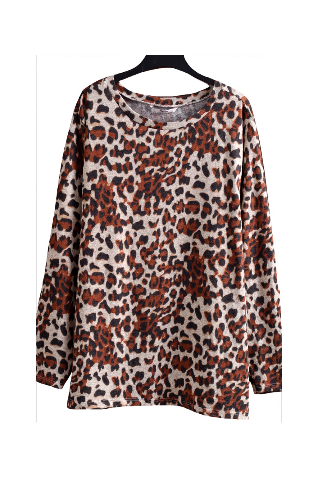 Dámský hnědo-černý svetřík s leopardím vzorem / TU - XXXXL (54) / UK 26 / ANGLIE