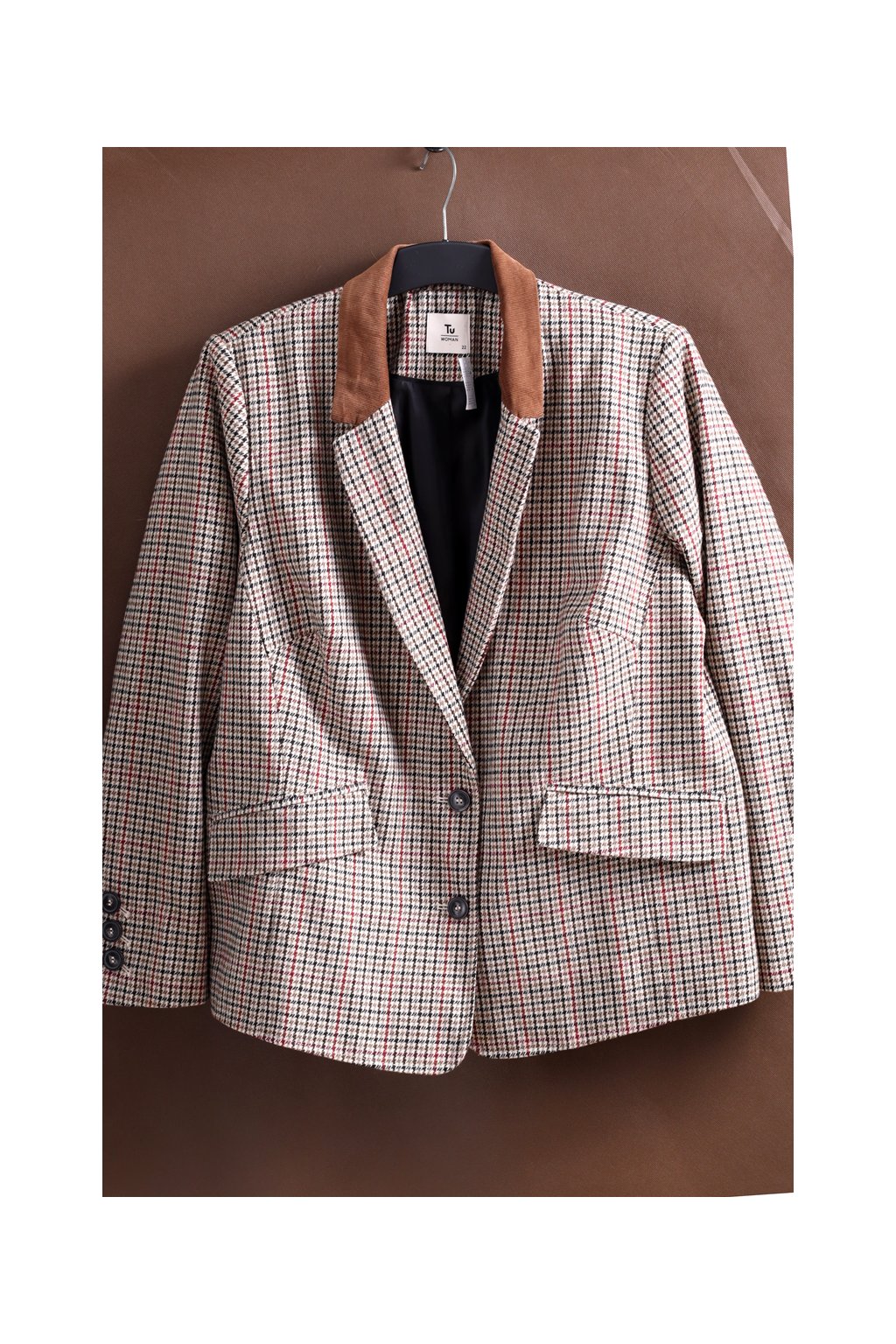 Dámský hnědý kabát s barevným károváním / Tu / XXXL (50) / ANGLIE