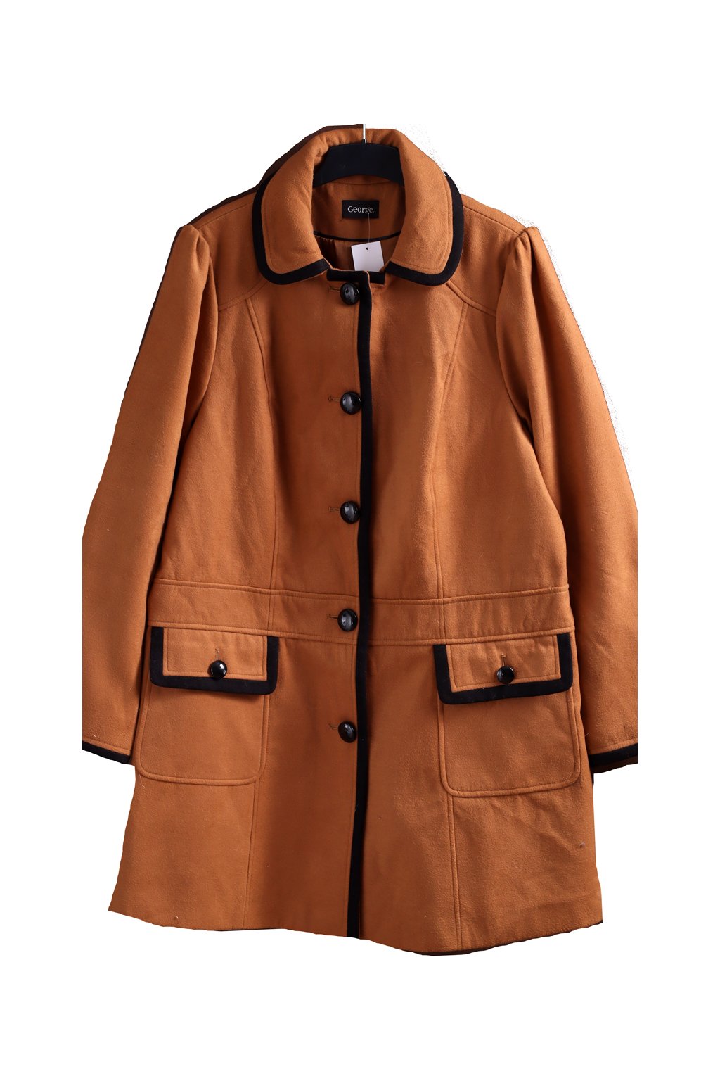 Dámský hnědý kabát s černým lemem / GEORGE / XXXXL (52) / UK 24 / ANGLIE