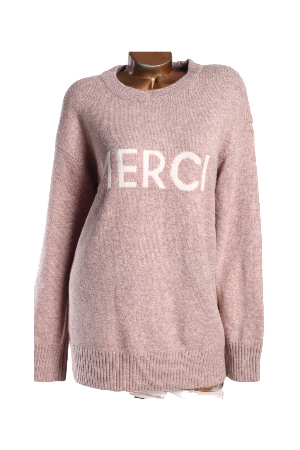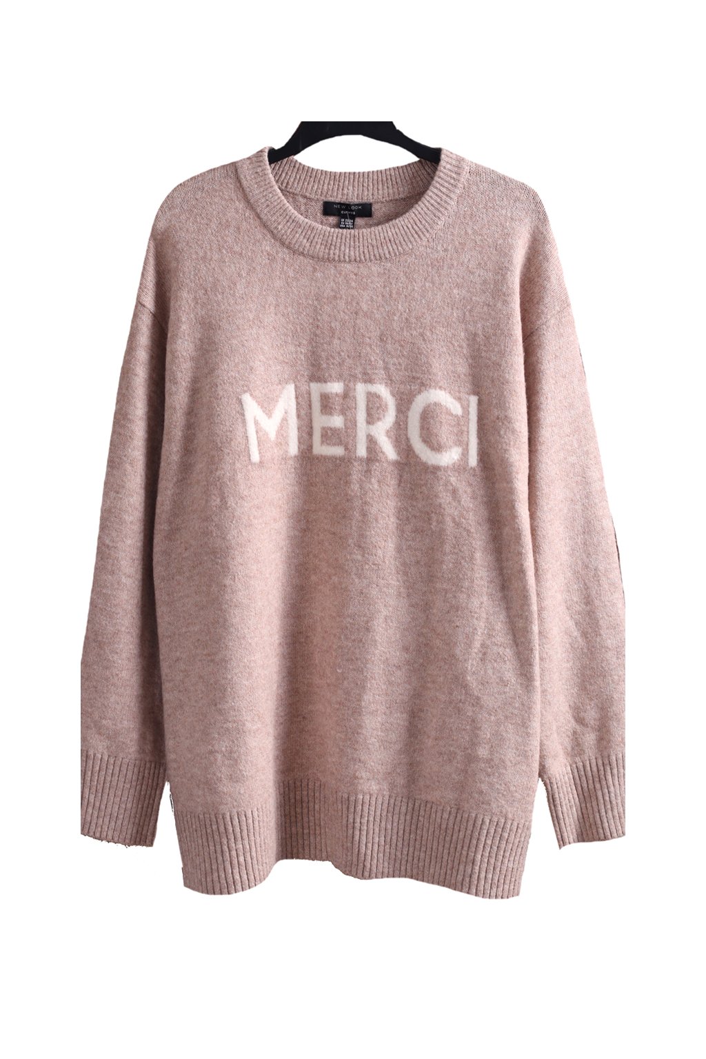 Dámský hnědý svetr s nápisem MERCI / NEW LOOK / XXXXL (50/52) / UK 22/24 / ANGLIE