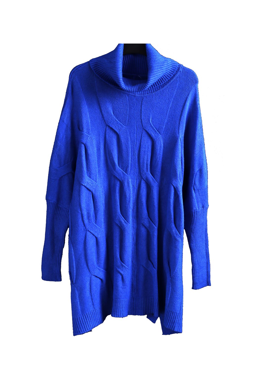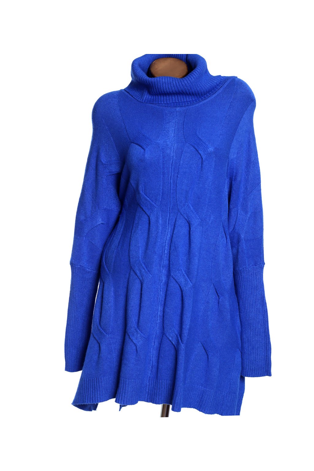 Dámský královsky modrý svetr - svetrové šaty s rolákem / XXXXL (52) / UK 24 /ANGLIE