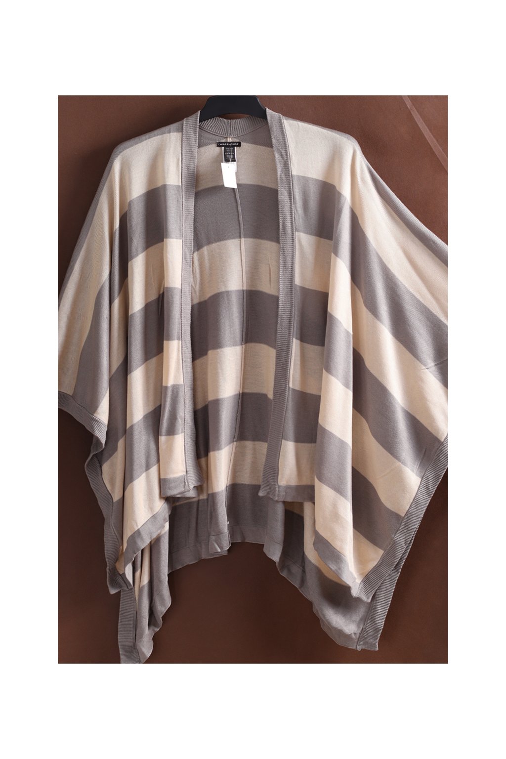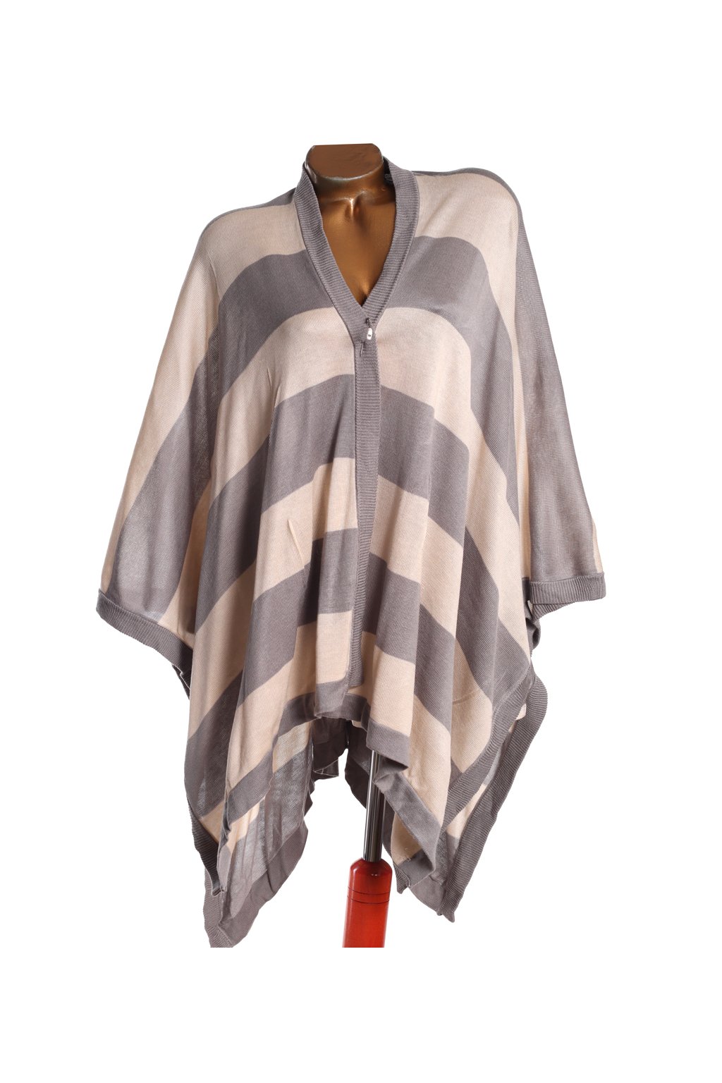 Dámský krémovo-šedý pruhovaný svetr (pončo) / WAREHOUSE / ONESIZE / na štítku ONESIZE / ANGLIE