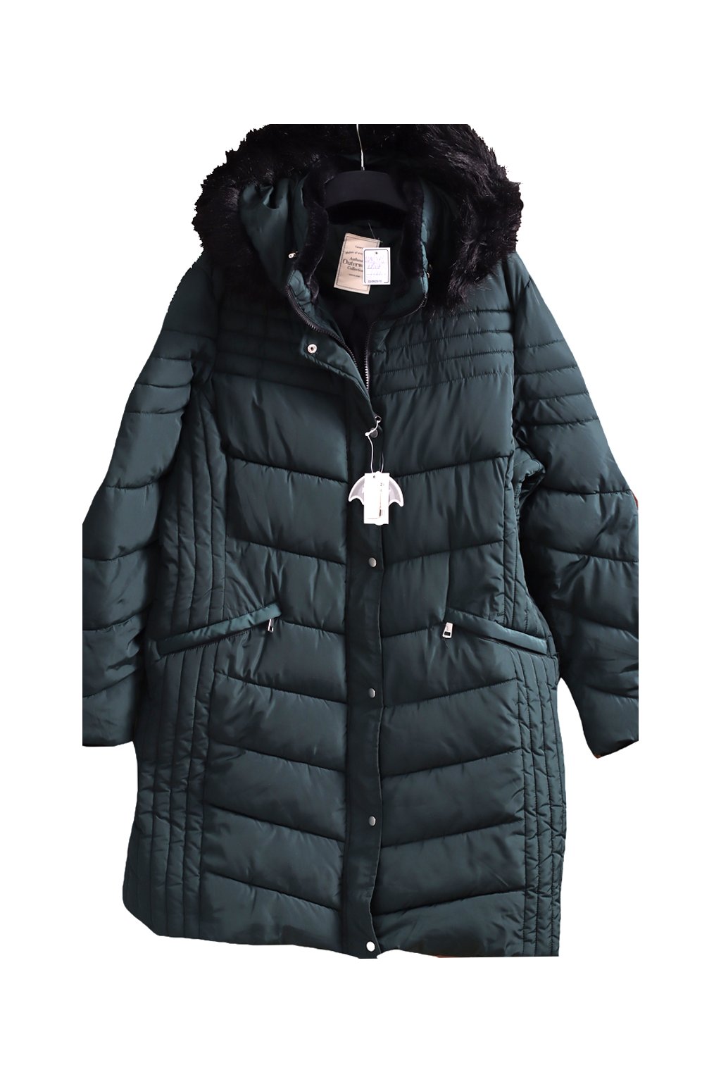 Dámský luxusní tmavě zelený prošívaný kabát s kapucou / GEORGE / XXXL (52) / UK 24 / ANGLIE