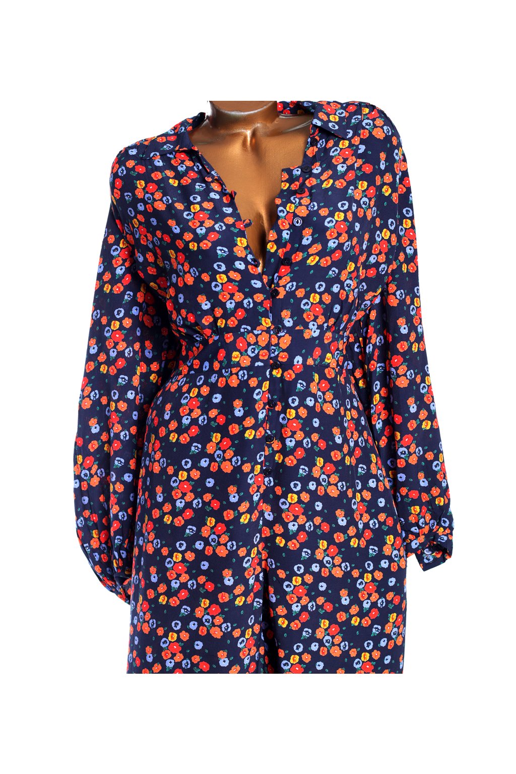 Dámský luxusní modrý overal s barevnými květy/ M§S / XXL (48) / UK 20 / ANGLIE