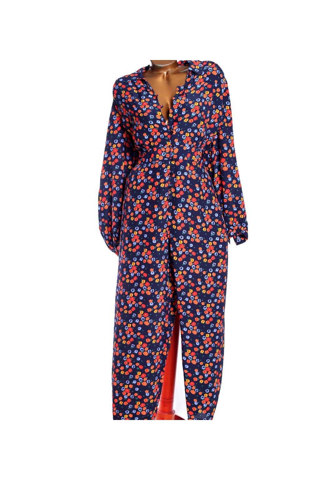 Dámský luxusní modrý overal s barevnými květy/ M§S / XXL (48/50/52+) / UK 20/22 / ANGLIE