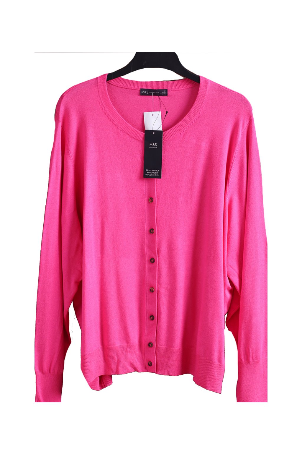 Dámský malinový propínací svetřík / Marks & Spencer / XXXXL (52) / UK 24 / ANGLIE